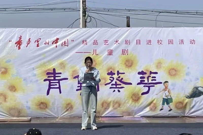 随后,丁聪校长发表讲话。他指出,文学与艺术是相互依存、相互促进的关系,它们共同构成了人类精神文明的重要组成部分,为我们提供了丰富的精神食粮和审美享受。丁校长强调,阅读是通向文学和艺术的必经之路,阅读不仅能够开阔视野、增长知识、陶冶情操、启迪智慧,更能为我们打开一片更加广阔的世界,为未来的学习和生活打下坚实的基础。他殷切希望,这次演出能够成为同学们爱上阅读的新起点,能够成为同学们投身阅读的新撬棒。