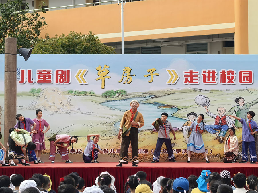 儿童剧《草房子》由中国著名儿童文学作家曹文轩先生荣获“国际安徒生奖”的同名经典名著改编,故事发生在20世纪60年代初,围绕主人公桑桑、杜小康、纸月等人所在的苏北水乡的油麻地小学和那标志性的“草房子”展开,讲述了这群孩子共同经历的苦难和快乐,心酸与泪水,迷茫与成长,具有震撼人心的力量。本剧以其独特的魅力,带领全体师生走进了一个充满爱与希望、欢笑与泪水的童年世界,让人们在这群孩子的故事里,找寻到自己曾经的影子,收获了满满的感动与心灵滋养。