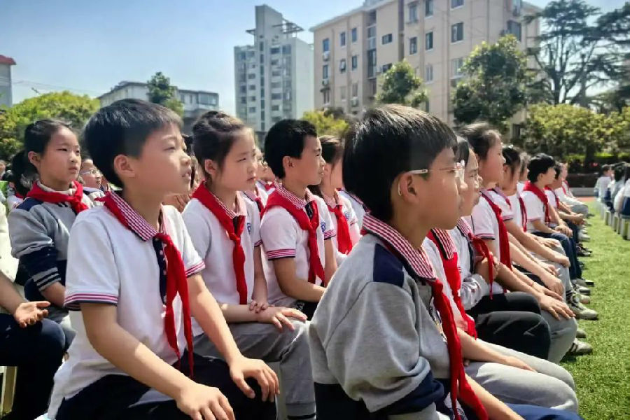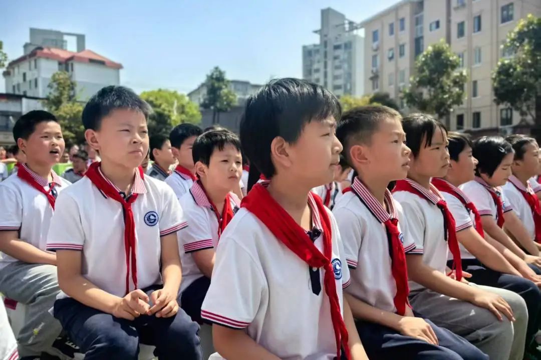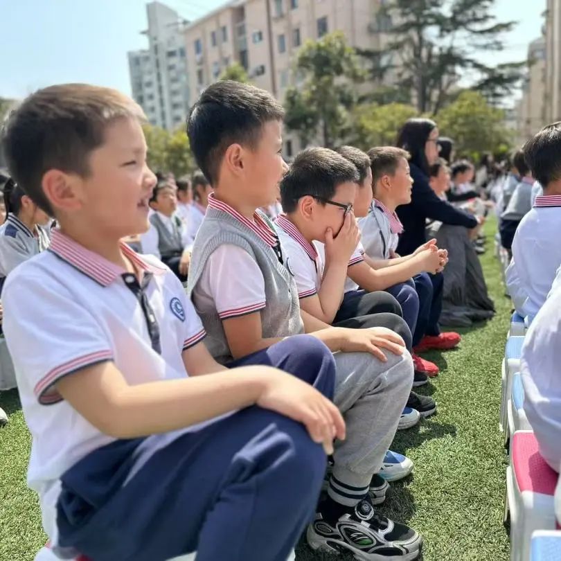 瞧,低年级的孩子们看得格外入神。当台上秃鹤那光亮的秃头出现在视野中,尤其是帽子被吹飞的那一刻,不少孩子紧张得攥紧了自己或同伴的衣角。而当秃鹤替补演伪军连长时,那锃亮的光头又让孩子们忍俊不禁,原本紧张的氛围瞬间变得轻松愉快。