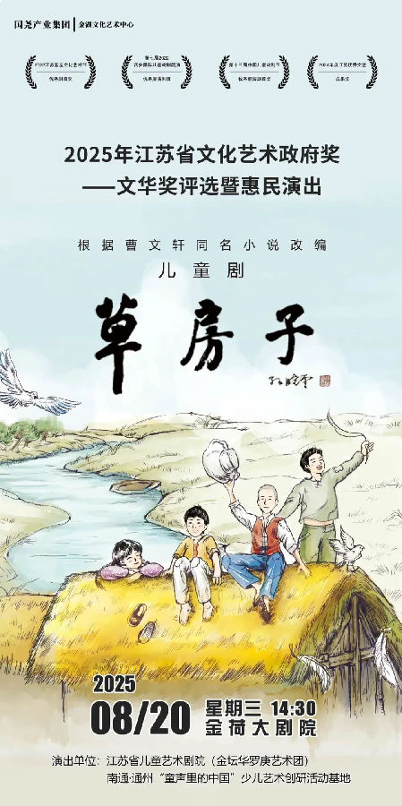 《草房子》改编自国际安徒生奖得主、作家曹文轩的同名经典小说,聚焦上世纪60年代油麻地小学的六年时光。剧中,主人公桑桑与秃鹤、纸月、杜小康等伙伴的故事串联起一连串看似寻常却动人心弦的瞬间:有秃鹤为捍卫尊严的倔强亮相,有杜小康从富家子到逆境中成长的蜕变,有桑桑在病痛中对生命的顿悟…… 这些扎根生活的细节,在舞台上化为一个个鲜活的场景。