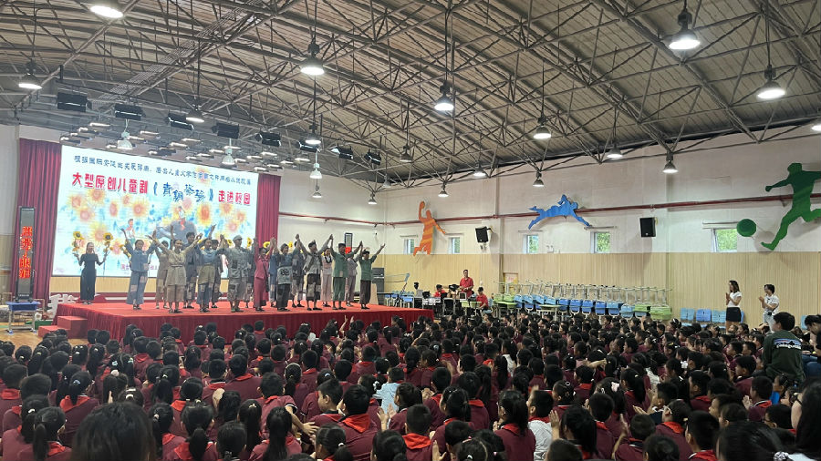 当音乐声响起,孩子们瞬间被吸引,全场鸦雀无声,大家都迫不及待地想要走进这个即将展开的故事。随着剧情的推进,同学们时而为青铜和葵花的遭遇而眼眶泛红,脸上满是担忧;时而又被他们之间那些充满童趣、温暖的互动逗得哈哈大笑,现场气氛随着故事的起伏而不断变化。剧中每一个情节的展现,都像是一把钥匙,打开了孩子们内心深处那扇关于爱、关于善良、关于坚强的大门。
