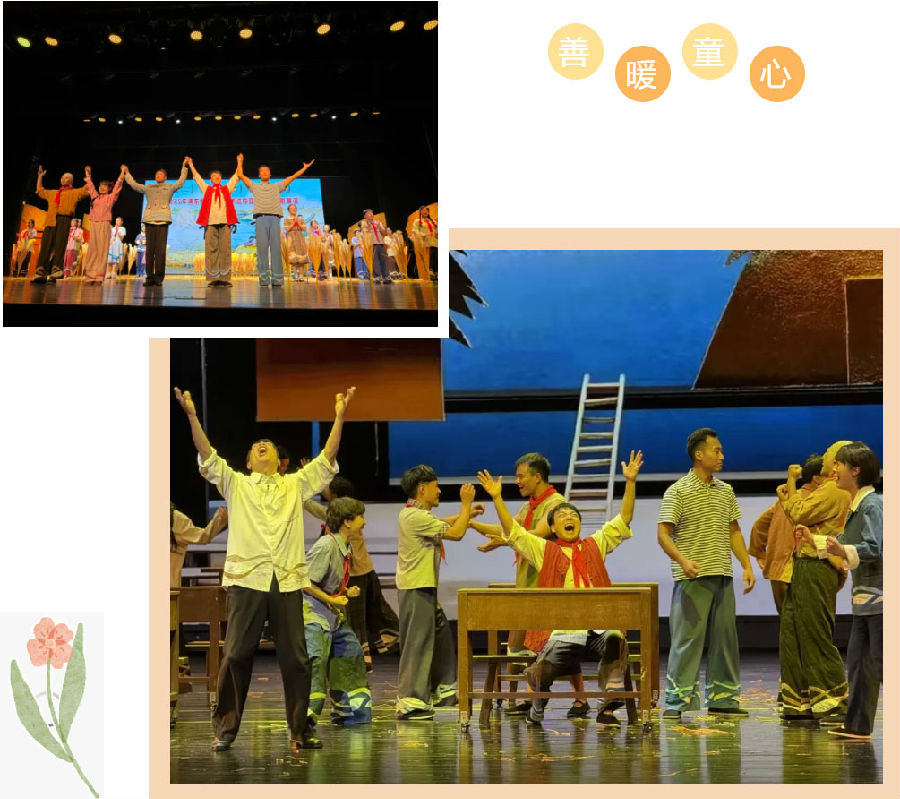 最戳人心的是陆鹤的故事,他护着光头闹小脾气时惹得孩子偷笑,站上舞台将“光头伪军”演得活灵活现时又让全场眼睛发亮,“接纳、自信、善意”的种子悄然种进孩子心里。当陆鹤顶着光头在台上昂首挺胸谢幕时,身旁的桑桑笑着朝他竖起了大拇指,这一幕让不少孩子跟着弯起了嘴角;老师们也笑着举起手机,定格下这带着少年底气的瞬间。这场演出早已不止是表演,是舞台内外的情感传递,用少年坦诚与同伴认可,完成了一场双向治愈。
