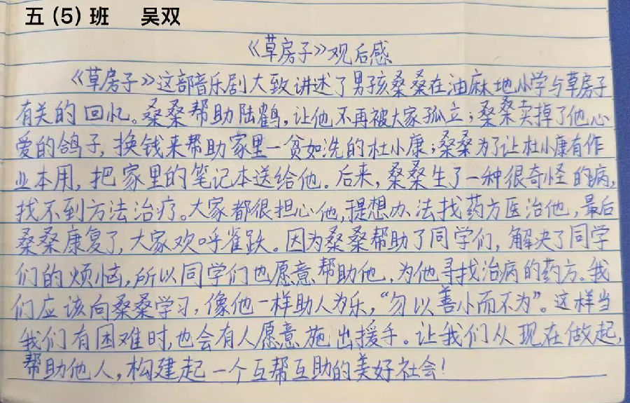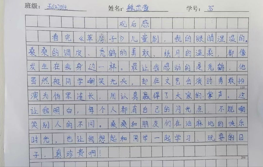 这场演出虽已落幕,但它带来的影响却在持续发酵:是孩子们对经典文学的好奇,是面对困难时的勇敢,是与朋友相处时的真诚…… 这些藏在故事里的成长力量,会像油麻地的阳光一样,照亮孩子们未来的路。看完表演后,同学们感慨万千,纷纷写下自己的感想!
