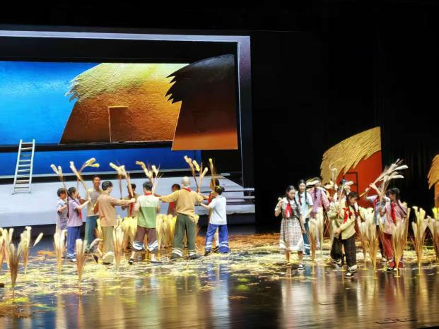 走进红领巾剧场,温馨的氛围与专业的舞台布置瞬间吸引了孩子们的目光。灯光渐暗,帷幕拉开,《草房子》的故事在舞台上徐徐展开。演员们凭借精湛的演技与生动的台词,将原著中纯真烂漫的童年时光、真挚深厚的同学情谊、直面困境的成长勇气演绎得淋漓尽致。舞台上,桑桑的顽皮聪慧、秃鹤的自尊自强、纸月的温柔善良,一个个角色栩栩如生;油麻地的田野风光、校园里的欢声笑语、成长中的酸甜苦辣,一幕幕场景真实可感。