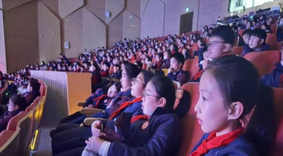 观影过程中,孩子们坐姿端正,目光专注,沉浸在剧情之中。当陆鹤用坚持赢得大家尊重时,孩子们眼中闪烁着敬佩的光芒;当杜小康在逆境中学会坚强时,孩子们陷入了深深的思考。而当剧中角色收获友谊与成长时,一张张小脸上又漾起了纯真的笑容。整场演出,孩子们始终保持着良好的秩序,用专注与安静表达了对舞台艺术的尊重、对文学经典的热爱,也展现了我校学子良好的精神风貌。