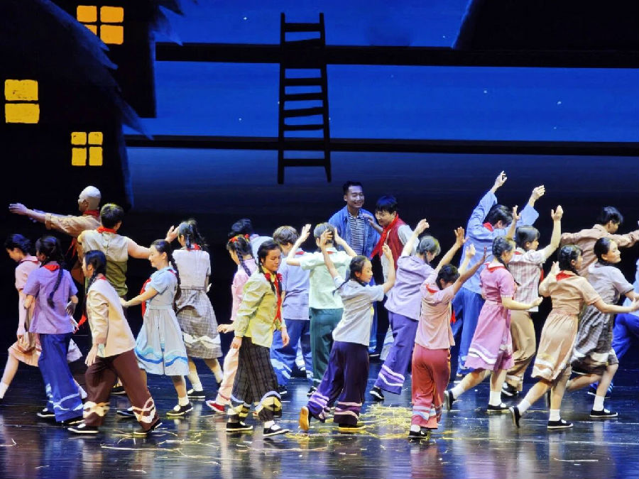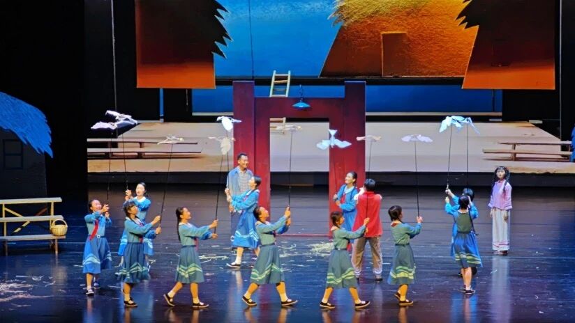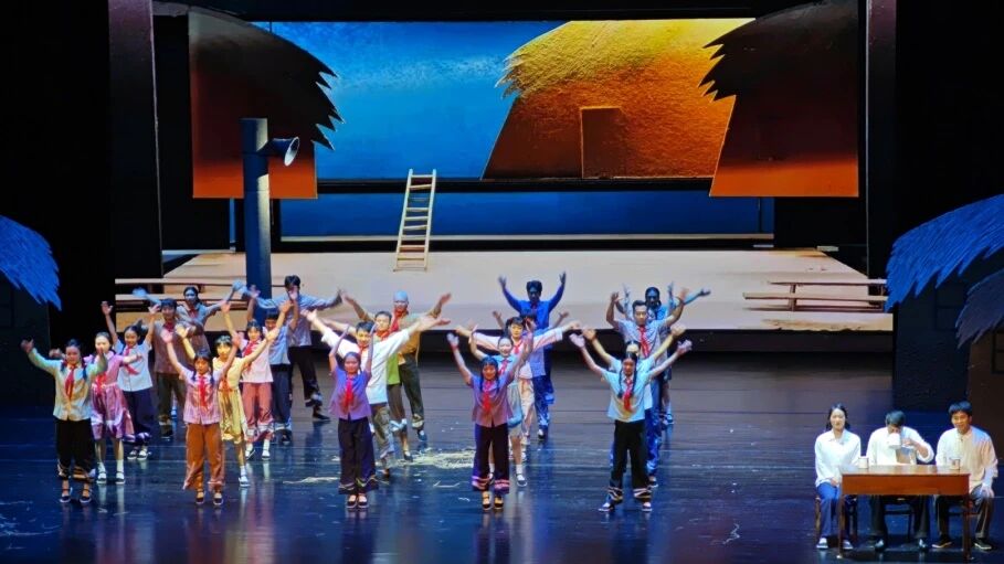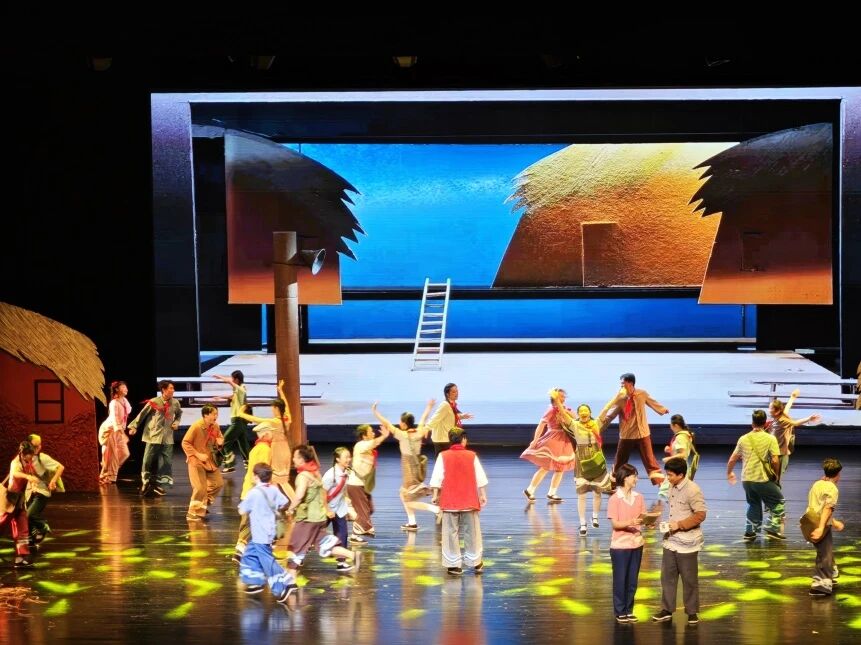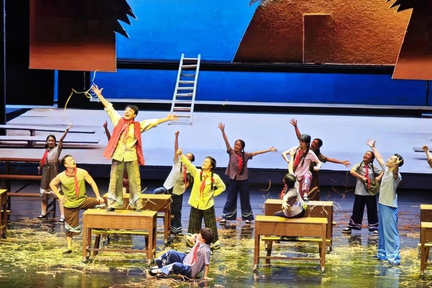 舞台上,桑桑和小伙伴们光脚坐在草堆上嬉笑打闹的模样,瞬间勾起了我的回忆——就像我和同桌总为小事争执,转头又会偷偷递上一颗糖,原来真挚的友谊,无论在哪都满是暖意。