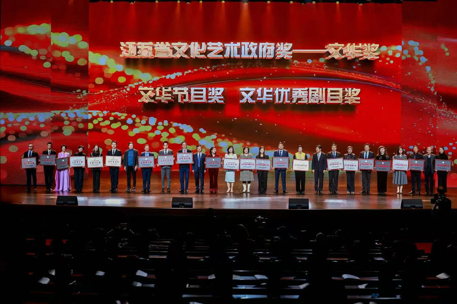 11月27日晚,江苏大剧院华灯璀璨,2025年江苏省文化艺术政府奖颁奖仪式暨优秀作品惠民展演活动在此隆重举行。现场举行了“文华奖”“五星工程奖”颁奖仪式,各类奖项逐一揭晓。