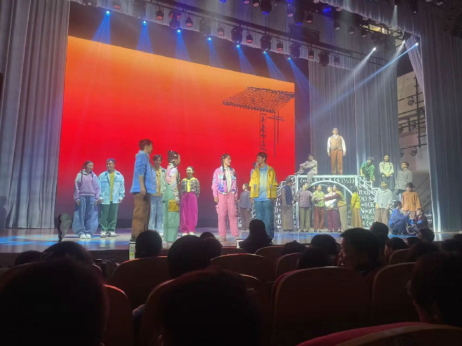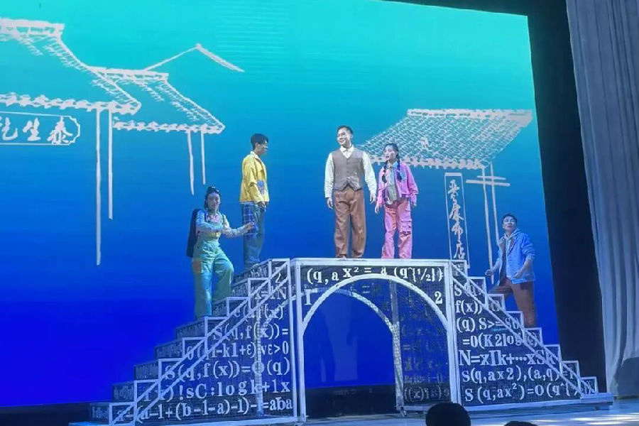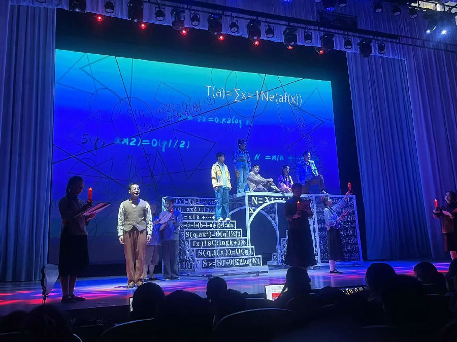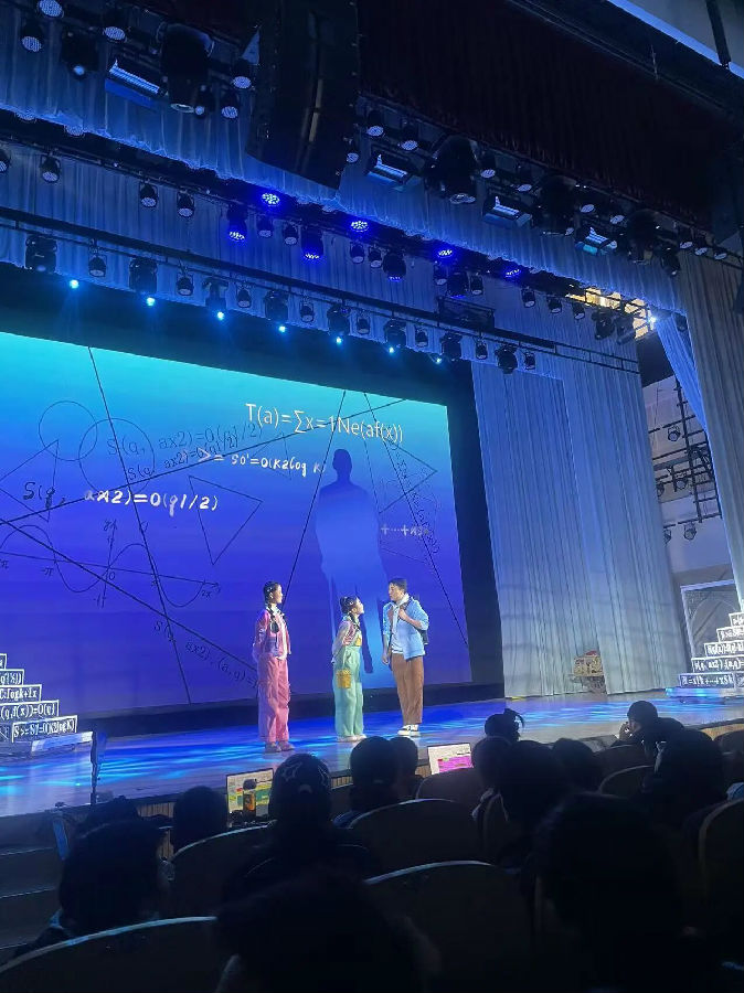 观剧过程中,同学们时而眉头紧蹙,时而掌声雷动。舞台之上,光影交错,数学公式舞美与金坛方言更添真实感,将抽象的科学精神具象可感。