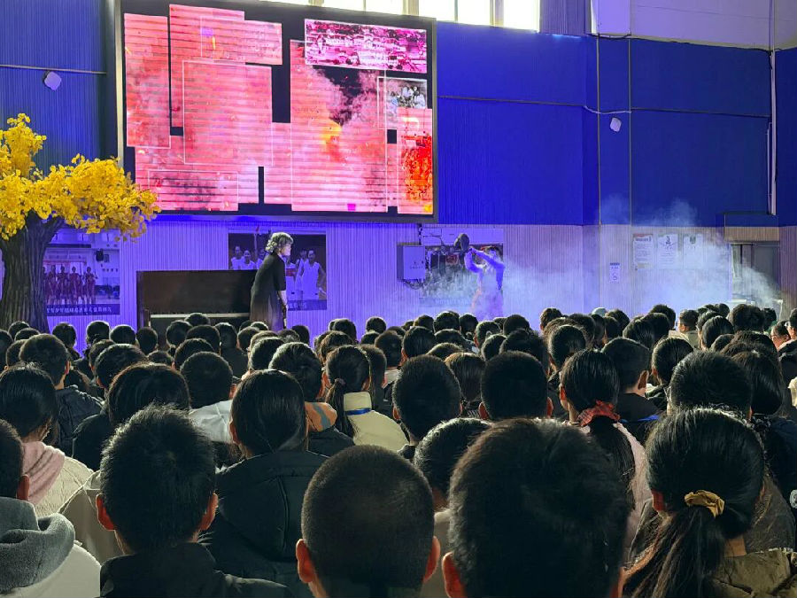 12月12日下午,新北区实验中学七年级全体学生齐聚笃行楼,观看江苏省儿童艺术剧团展演的经典话剧《野蜂飞舞》,学生们在艺术熏陶中感悟家国情怀、筑牢文化自信。