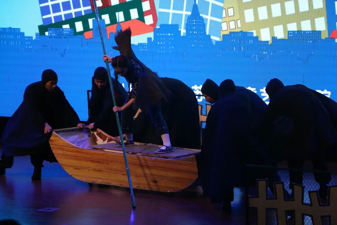 从长荡湖驶来的小船,载着留守女孩香月的乡愁闯进城市校园:升旗礼上的局促、被误会时的委屈、思念故乡的轻愁,被华罗庚艺术团用音乐旋律裹满水乡水汽,用舞蹈肢体织就校园烟火——舞台上摇荡的船桨是乡愁的具象,舒展的水袖是故乡的温度,让“陌生环境里的成长”成了一曲能触碰的交响。