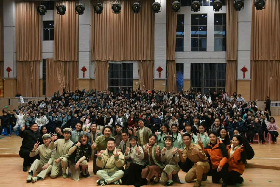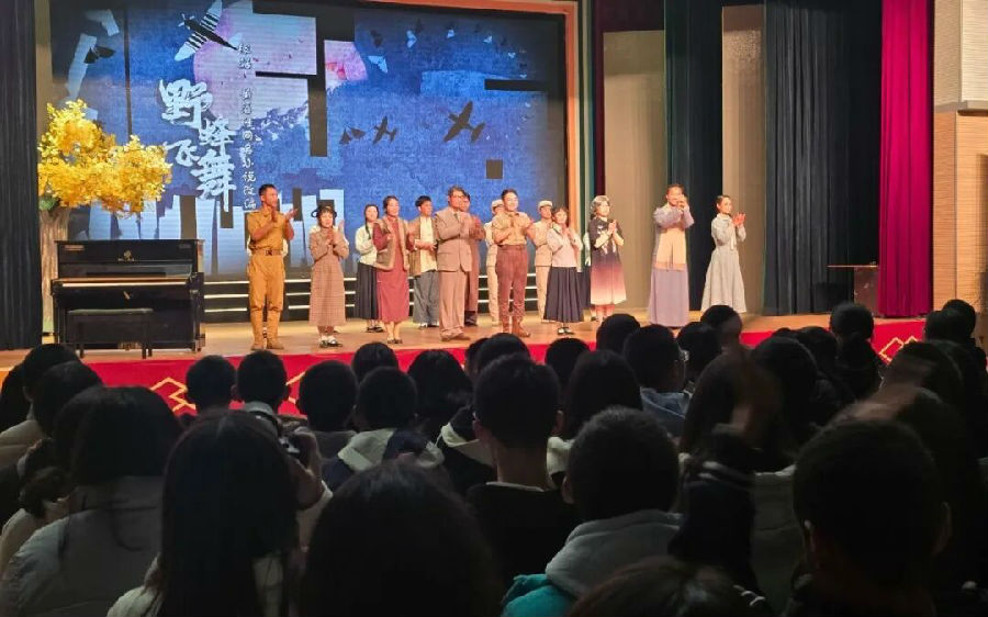 舞台上,演员们以生动的表演、饱满的情绪,将一个个鲜活的角色呈现在大家眼前。跌宕起伏的剧情牢牢吸引着每一位同学的目光,大家时而因角色的遭遇屏住呼吸,时而为勇敢的抉择热烈鼓掌,现场欢呼与掌声接连不断。当“天路哥哥”身着空军服亮相时,全场响起热烈掌声;而当最后一幕“空中撞机”上演时,现场在沉默中静息,唯见道道泪光闪动……