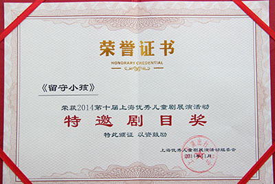 2014年11月《留守小孩》荣获2014第十届上海优秀儿童剧展演活动“特邀剧目奖”。