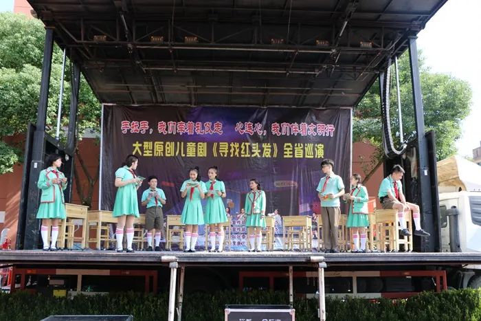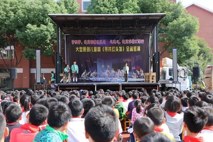 10月24日中午,江苏省宣传部、江苏省文明办出品的《寻找“红头发”》现代儿童剧在渭塘实验小学演出。该剧是反映“八礼四仪”养成教育现实题材的儿童剧。