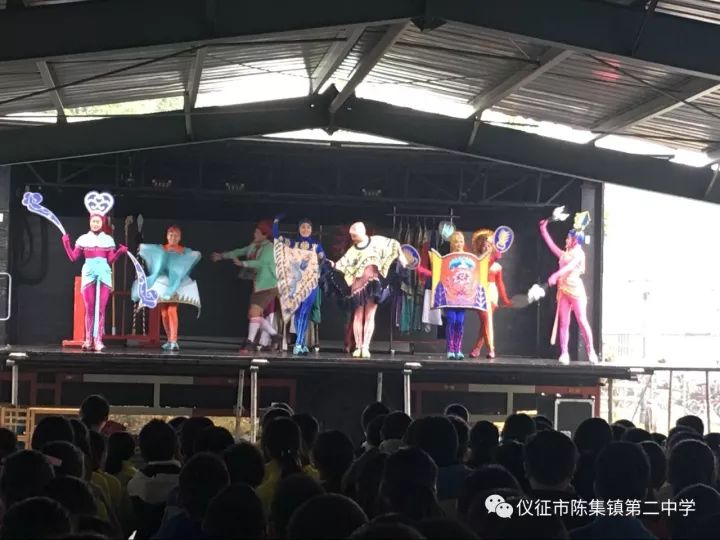 11月17日上午,由江苏省委宣传部、江苏省文明办、常州市委宣传部、常州市文明办联合出品的大型原创儿童剧《寻找“红头发”》巡演在仪征市陈集中学举行,该校全体师生观摩了精彩演出。