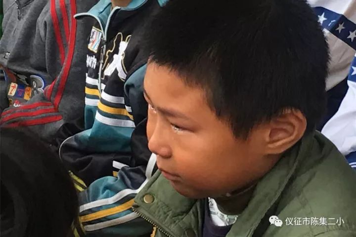 着重介绍这位小朋友——杨云江,演出结束后回到班级中,嚎啕大哭,沉浸在故事的感人情节中久久不能自拔,直到演出单位的车辆从学校准备离开,才睁开通红的眼睛依依不舍的在班级里看着他们离开校园。