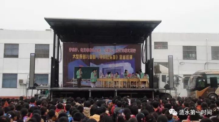 所有同学在学校领导、老师的陪伴下,静静地欣赏。为故事跌宕起伏的情节而左右思绪,他们时而笑意盈盈,时而紧锁双眉,时而热泪盈眶,时而忍不住笑出了声,又不禁揉揉大眼睛……舞台上的演员深情演绎精彩,台下的孩子们用热烈的掌声表示喜欢与感谢。