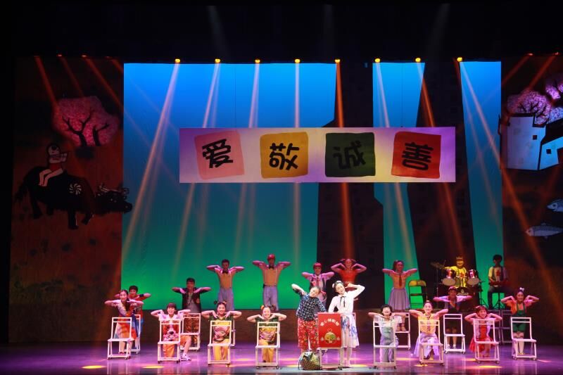 首场演出开始,扎着羊角辫、身着印花布的田梦儿一出场,就让小观众们感到可亲可近。她从乡下到城里来上学,求上进、有志向、能感恩、有爱心,是一个朴实善良忠实坚强的阳光少年。生动的故事,悠扬的音乐,欢快的舞蹈,歌好听戏好看,台上台下融成了宽阔的“大舞台”。调换座位、班级捐款、网吧围堵、寻找爷爷,故事一个连着一个,好像就发生在身边,紧紧牵动心灵,故事情节高潮迭起,孩子们一次又一次热泪流淌。“寻找爷爷”一场中,田梦儿的爷爷累到天黑还没有回家,同学们陪同田梦儿一起去大街小巷、公交站台、医院诊所寻找,还是不见爷爷的影子。“爷爷啊爷爷,你在哪里……”台上在唱,台下小观众也叨念起自己的爷爷奶奶了……动感的歌声唱出内心的感激和感恩,唱出少年时光的点滴进步和成长离不开亲人年年月月含辛茹苦。