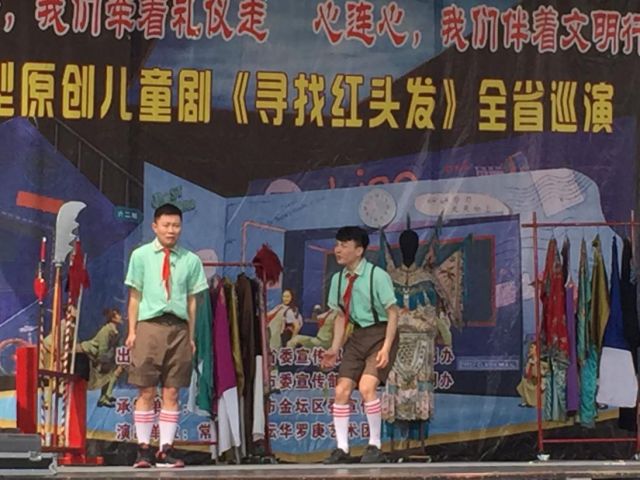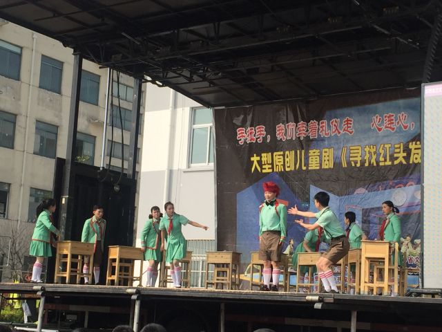 3月26日,由江苏省委宣传部和省文明办、常州市委宣传部和常州市文明办联合出品、常州市金坛华罗庚艺术团演出的大型原创现代音乐儿童剧《寻找“红头发”》在我市常乐小学、初中进行首场巡演。市委宣传副部长、文明办主任郁国强等参加了现场活动。