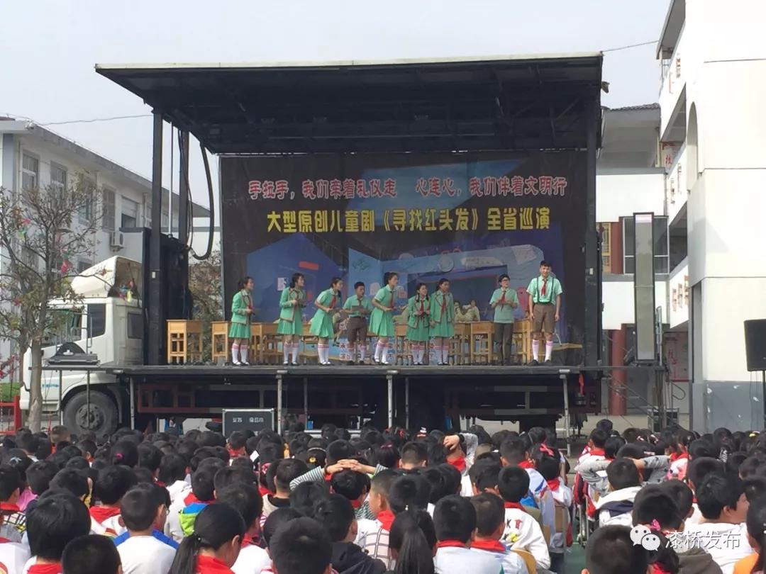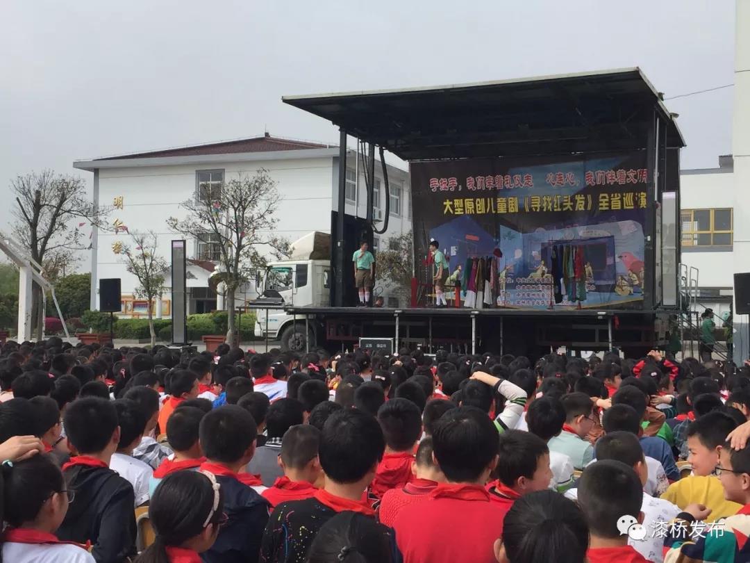 4月2日上午,由江苏省委宣传部、江苏省文明办出品,常州市金坛华罗庚艺术团编导和表演的大型原创儿童剧《寻找红头发》全省巡演走进漆桥中心小学,该校全体师生观看了演出。