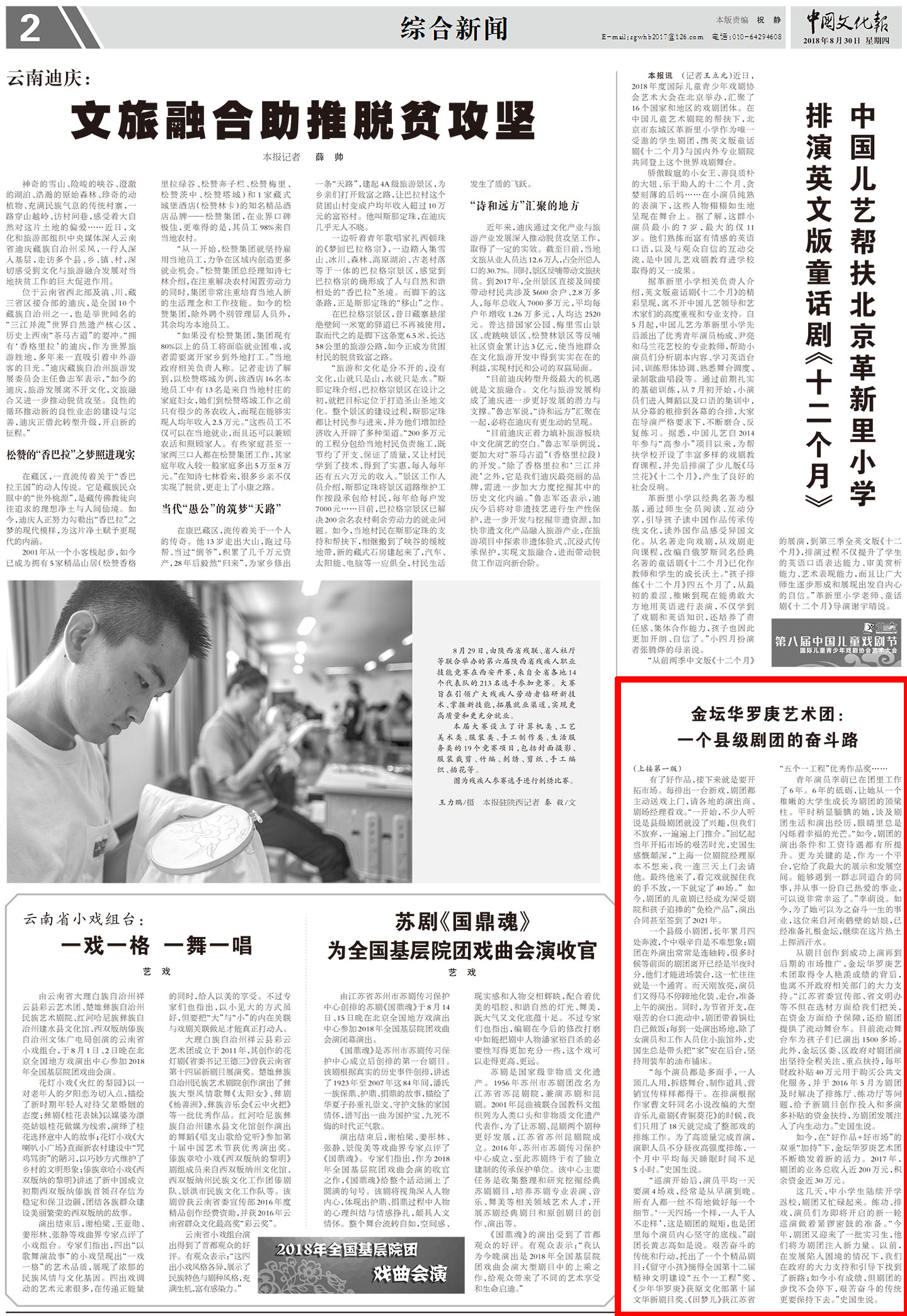 接连创排《少年华罗庚》《田梦儿》《留守小孩》等9部现实主义题材原创儿童剧,获得了30多个国家级、省级重要奖项,在江苏、北京、上海等地巡演8000多场,观众超过800万人次……江苏省常州市金坛华罗庚艺术团,一个原本名不见经传的县级剧团,借着文化体制改革的东风,靠着全团演员“端着饭碗走市场,扛着被子睡剧场”的艰苦奋斗精神以及对表演艺术始终不渝的热爱走到了现在。经历了数不清的挫折后,剧团最终迎来了成长蜕变。