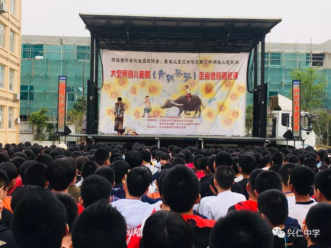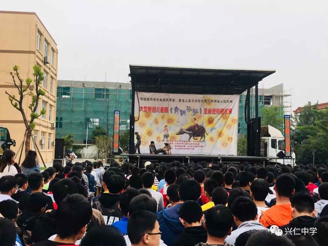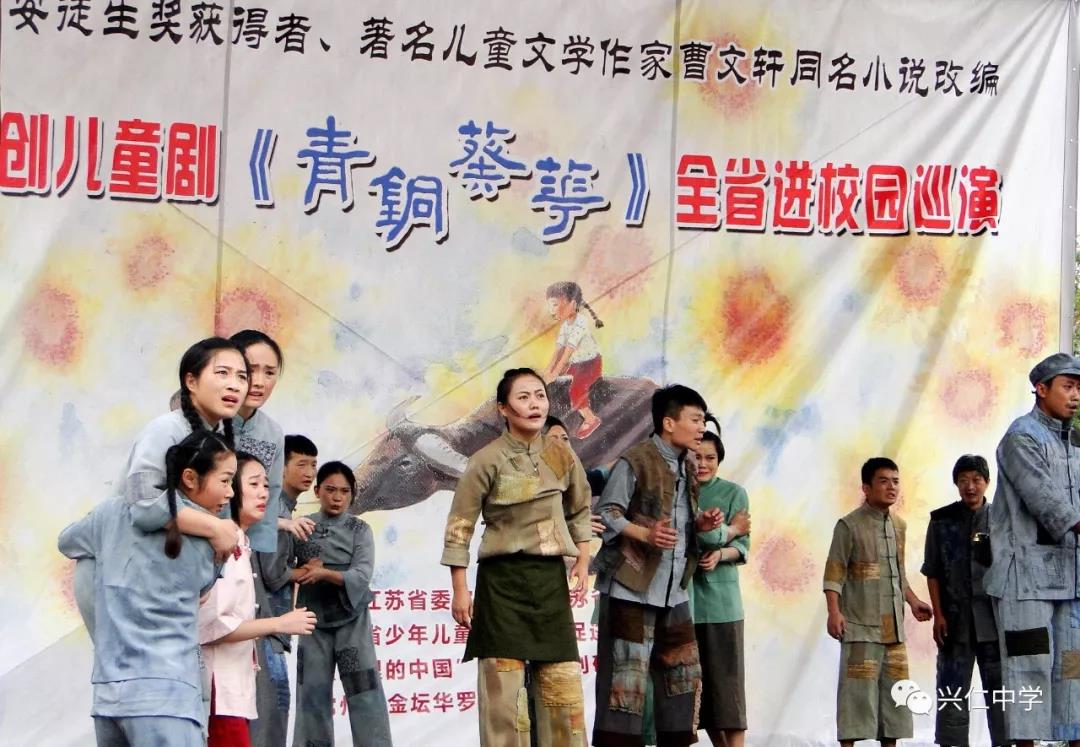 作为2018年紫金文化艺术节舞台艺术展演原创剧目唯一一部儿童剧,由中共江苏省委宣传部、江苏省文明办出品,江苏省少年儿童文化艺术促进会、“童声里的中国”少儿艺术创研活动基地承制,常州市金坛华罗庚艺术团演出的儿童剧《青铜葵花》,10月9日下午在兴仁中学温情上演。全校初一、初二师生共同观看,引发了师生们泪目。