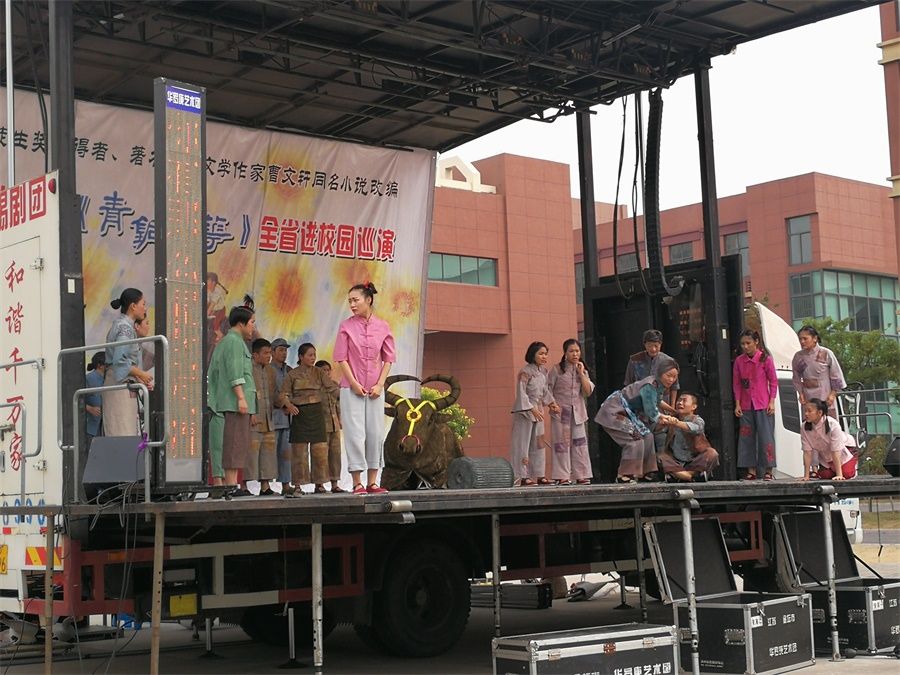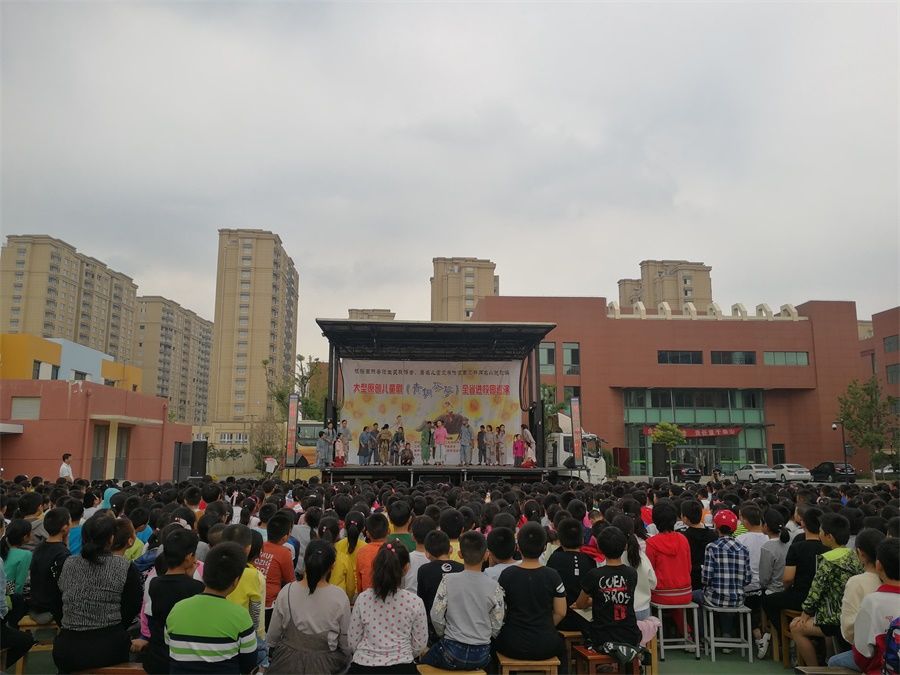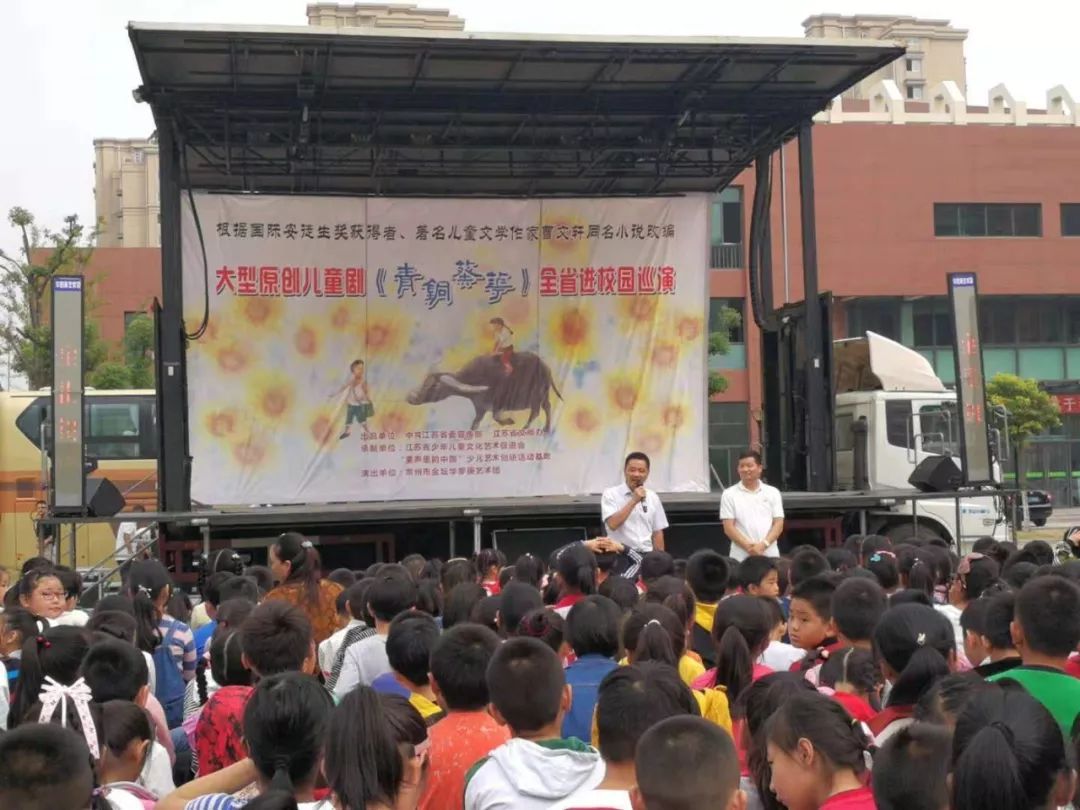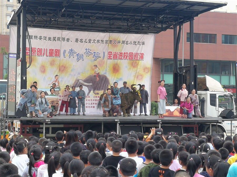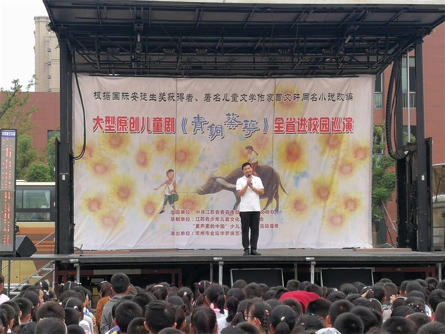 金秋十月,习习凉风吹过,校园里弥漫着阵阵桂花的清香。孩子们端坐在学校操场,静静地等待着,目光齐刷刷望向一处――操场中央临时搭建的舞台。原来,来自江苏省常州市金坛华罗庚艺术团的艺术家们走进兴仁小学,带来了根据著名儿童文学作家曹文轩同名小说改编的《青铜葵花》儿童剧,给孩子们带来了一场视听盛宴。