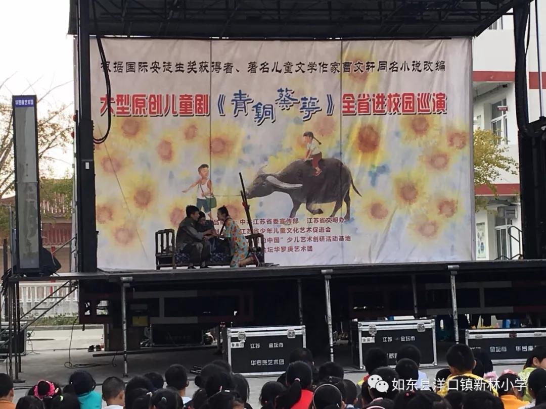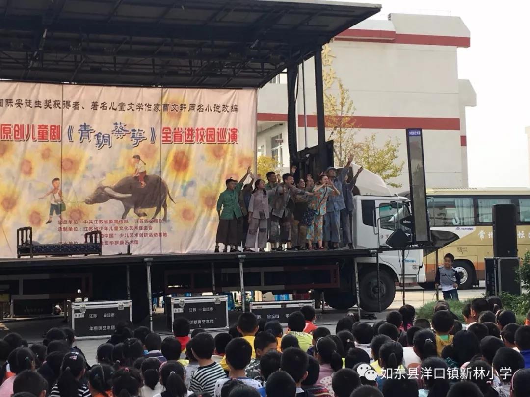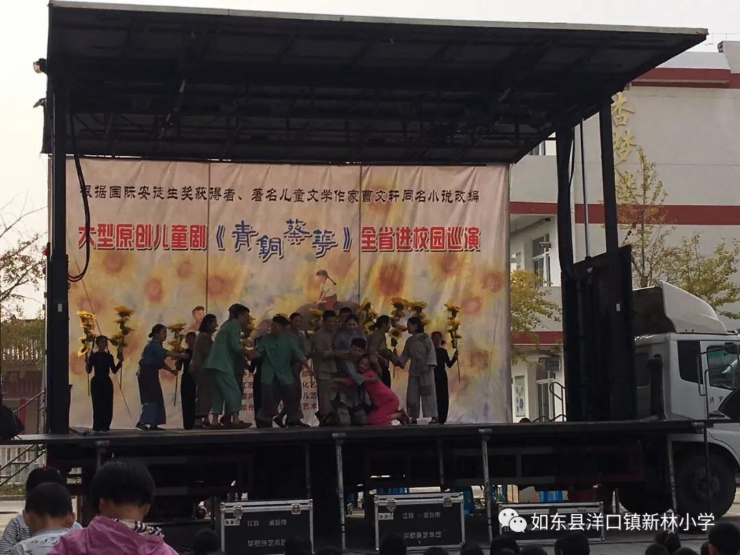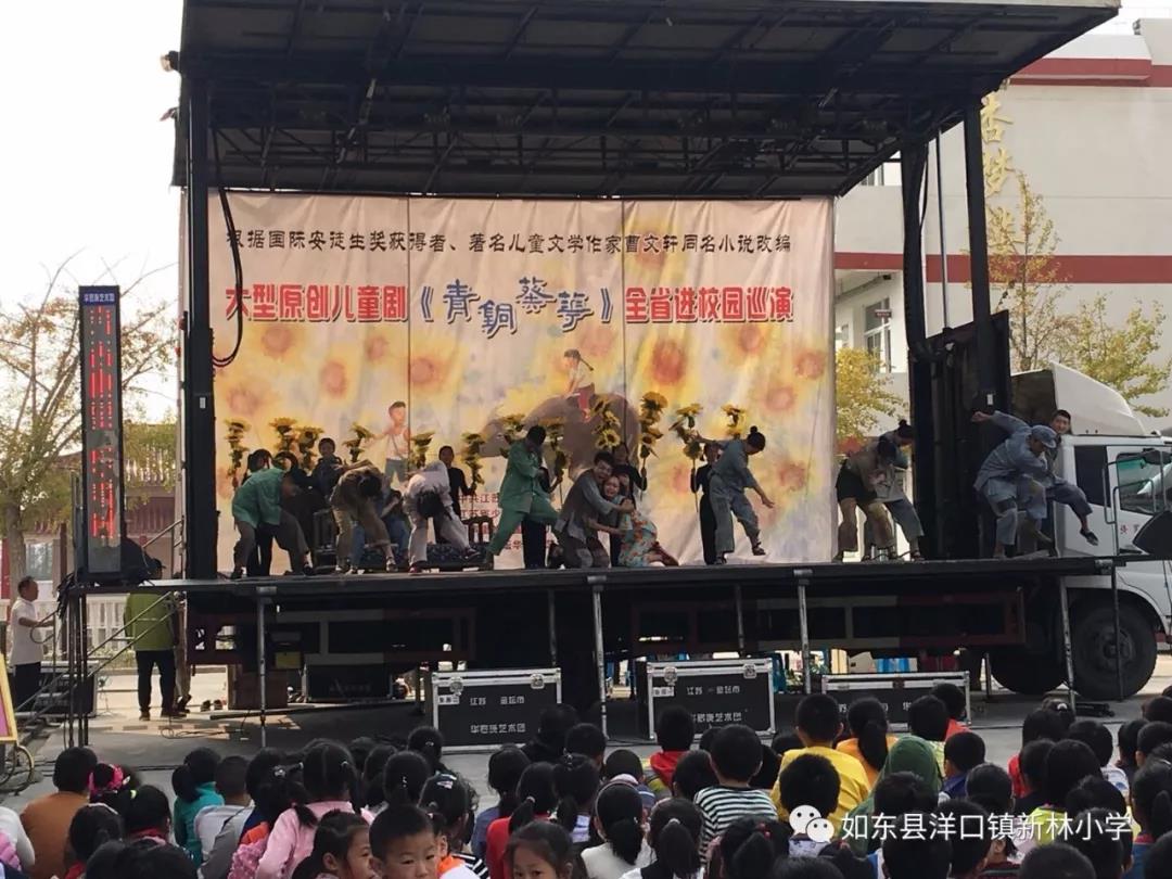 10月17日中午,如东县洋口镇新林小学3-6年级的学生格外兴奋,因为今天省少年儿童文化艺术促进会、“童声里的中国”少儿艺术创研活动基地承制的儿童剧《青铜葵花》将在洋口镇演出。