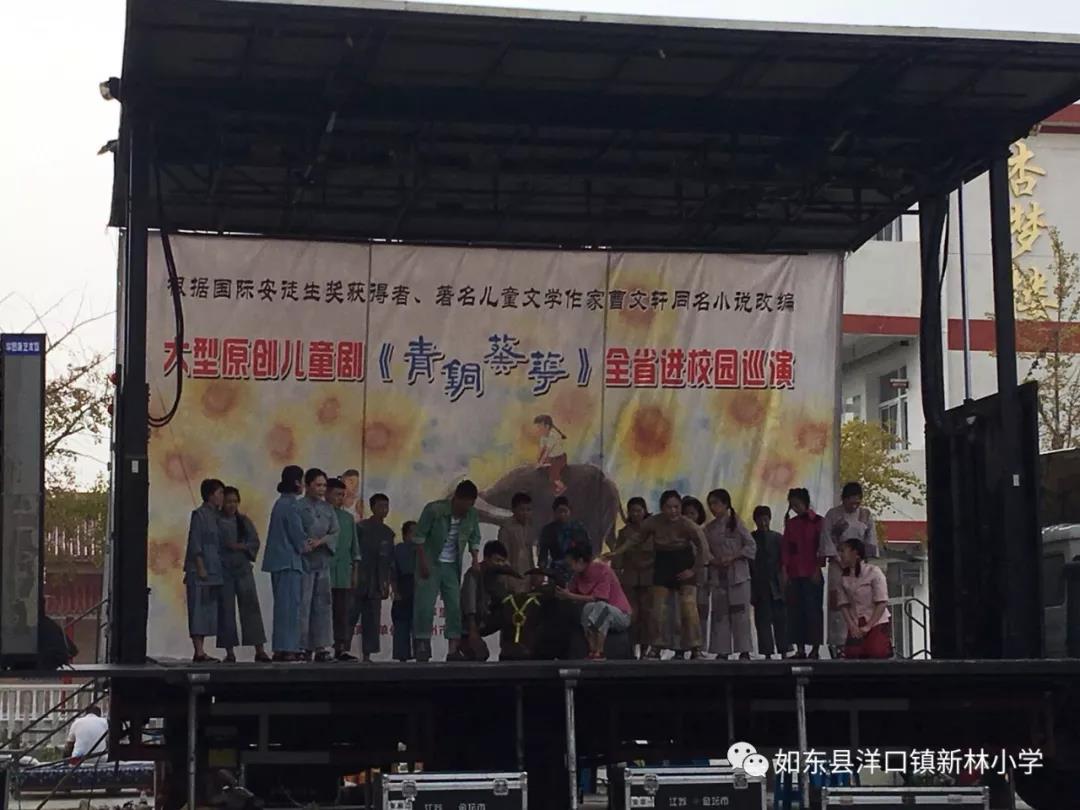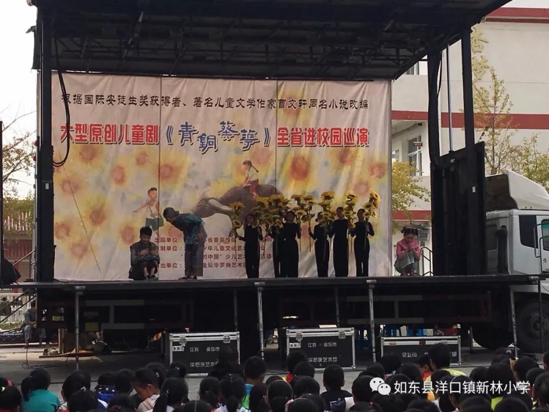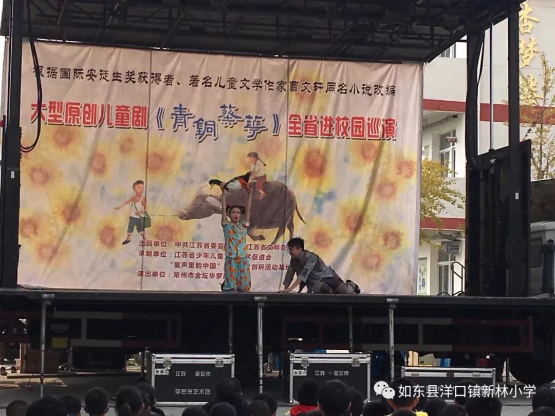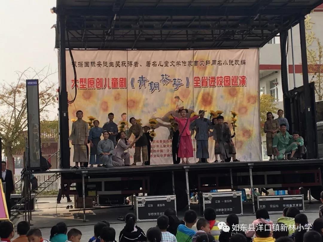 10月17日中午,如东县洋口镇新林小学3-6年级的学生格外兴奋,因为今天省少年儿童文化艺术促进会、“童声里的中国”少儿艺术创研活动基地承制的儿童剧《青铜葵花》将在洋口镇演出。