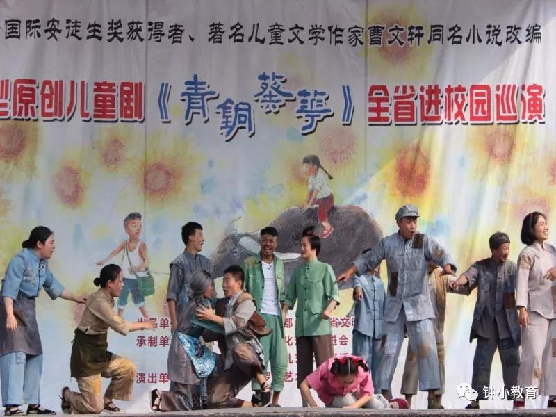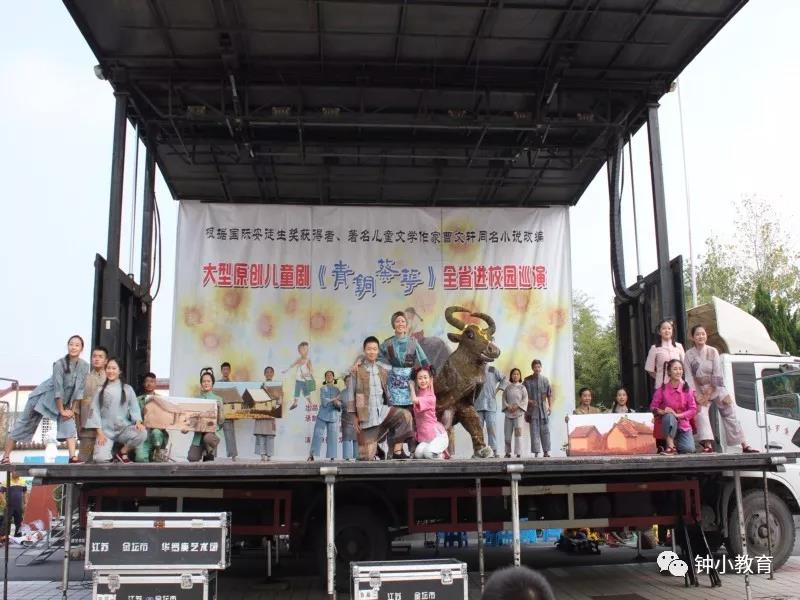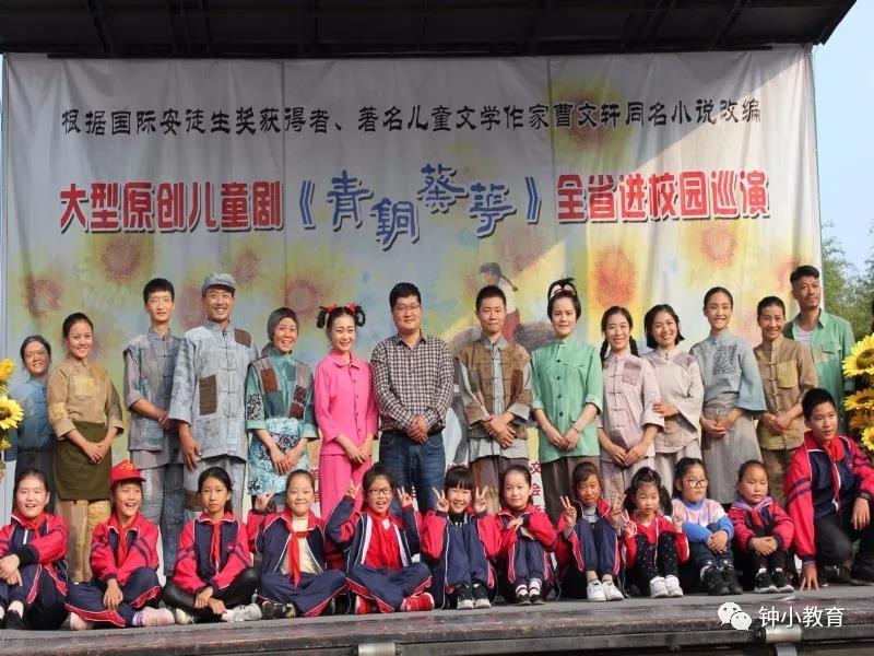 金秋十月,丹桂飘香,迎着阵阵惬意的秋风。10月24日下午,钟庄小学全体师生及部分社区市民端坐在学校广场,目光一致地看着流动舞台车。大型原创音乐儿童剧《青铜葵花》公益巡演如约来到了我校演出,给孩子们带来了一场绝美的视听盛宴。