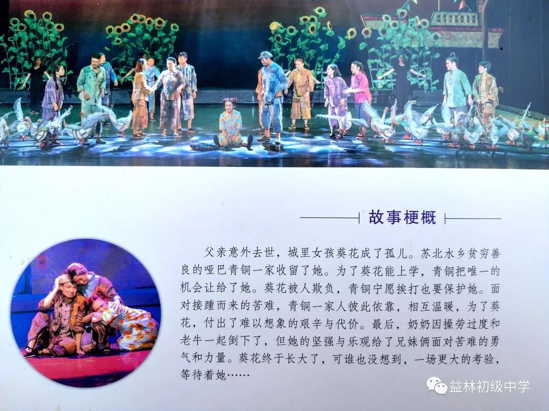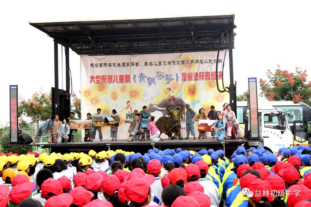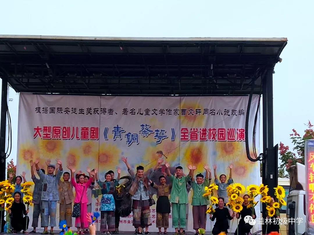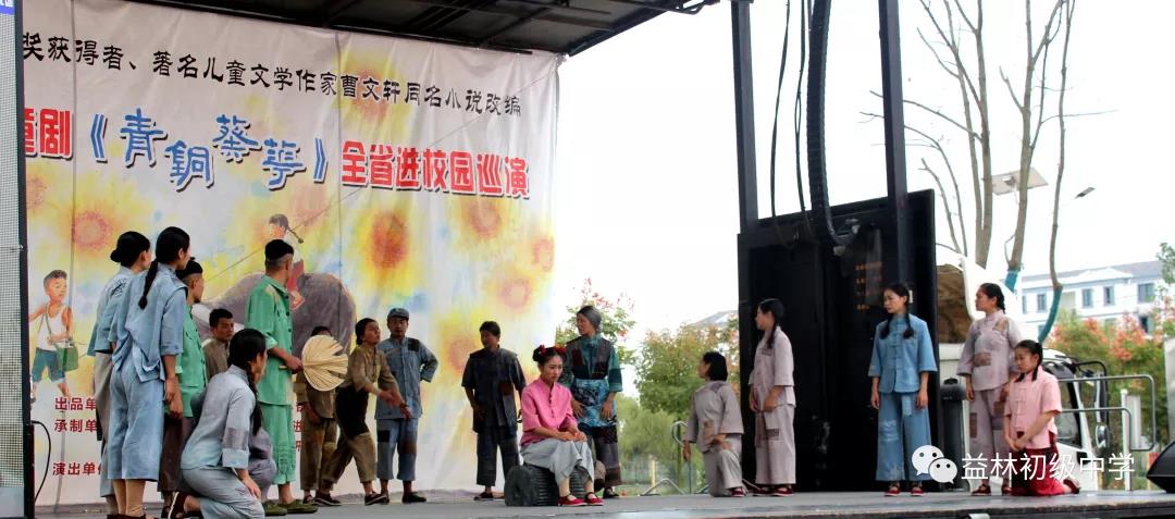 10月25日下午,由省委宣传部、省文明办出品,华罗庚艺术团演出的儿童剧《青铜葵花》走进了我们益林初中。长篇小说《青铜葵花》又一次以大型音乐儿童剧的形式,精彩呈现在同学们的眼前,倍感熟悉!