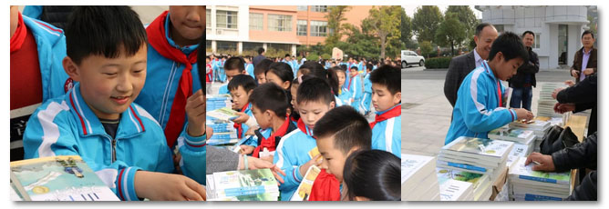 活动结束后,我县新华书店流动站人员到校为孩子们服务,提供了以《青铜葵花》为主的曹文轩系列丛书,孩子们购书热情空前,不少孩子书一拿到手就迫不及待的读了起来。