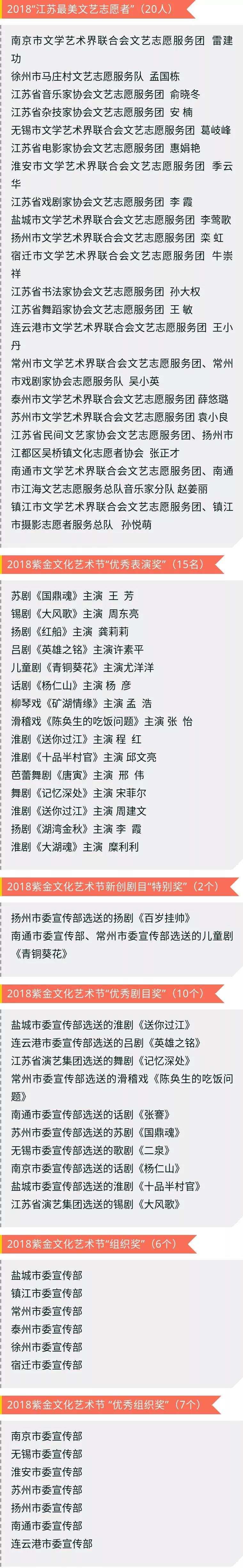 2018“紫金文化艺术节”在“江苏文化艺术节”与“精彩江苏艺术展演月”合并基础上全新呈现,参选剧目体现新成果,艺术惠民推出新举措,宣传推广开辟新渠道,得到了全省上下的大力支持和人民群众的踊跃参与,充分体现了文艺的时代性、艺术性和公益性,彰显了文化的感召力、凝聚力和引领力,为推动江苏文化高质量,建设“强富美高”新江苏营造了良好的氛围,发挥了积极的作用。