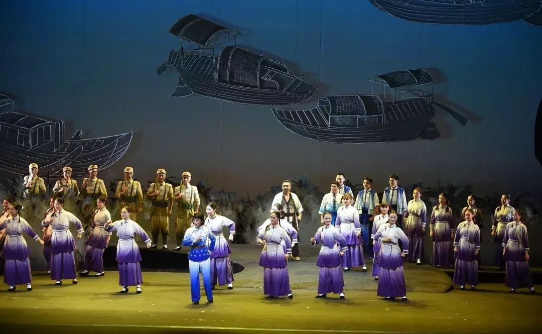 丰富多样的地方剧目,勾勒出江苏文化的美丽内蕴,也将发生在沿江一带的凡人小事搬上舞台,根植传统又突破创新。苏剧《国鼎魂》谱写一曲为国护宝、九死不悔的“时代正气歌”; 锡剧《大风歌》用小家碧玉的剧种演绎出大开大合的历史厚重感;淮剧《送你过江》唱响红色旋律,把胜利送过长江;话剧《张謇》以一己之力做一城之事,再现波澜壮阔的救国梦……