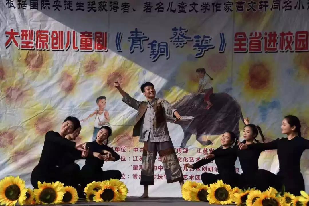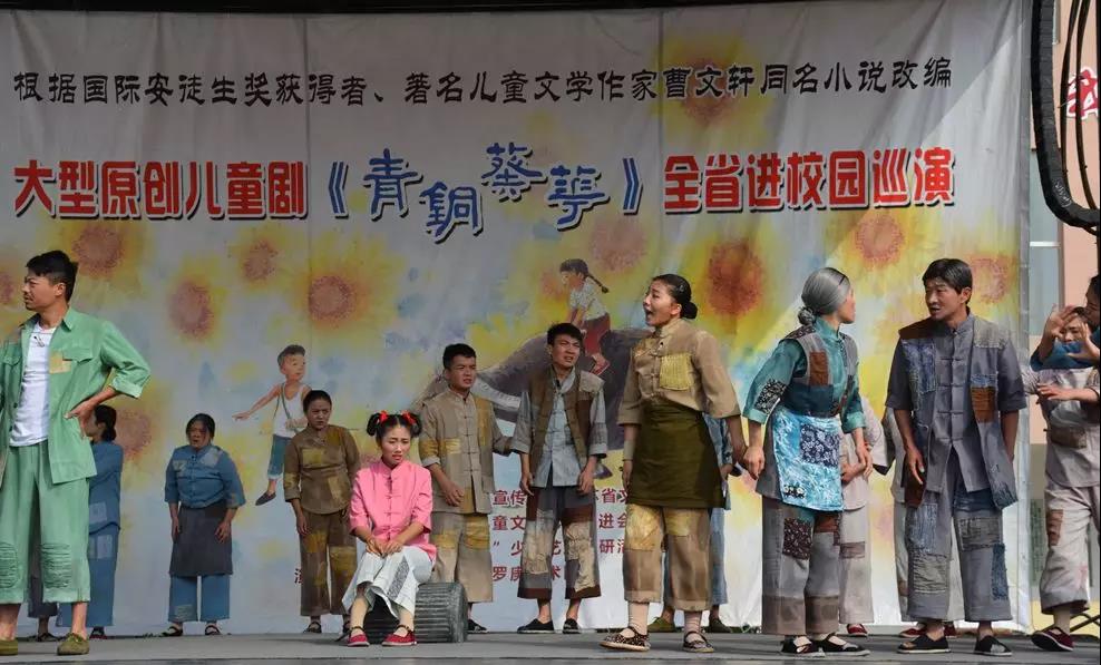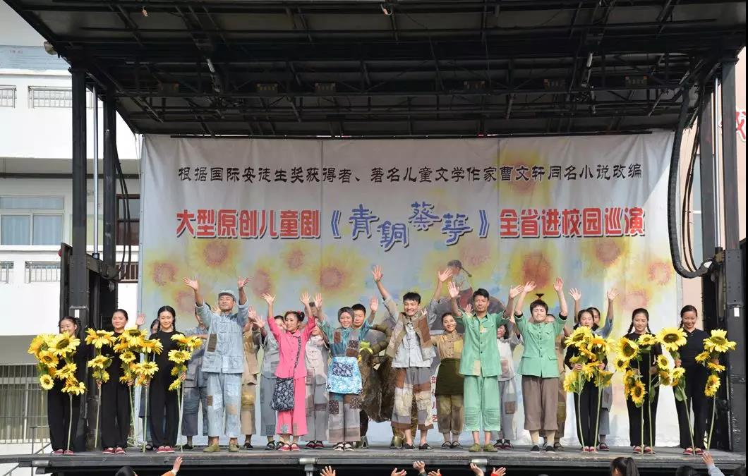 11月14日下午,音乐儿童剧《青铜葵花》全省进校园巡演活动来到泗洪县临淮小学。 一个多小时的演出,演员们用真挚的情感、有力的表演,讲述了那个发生在油麻地的温情故事,感动了该校无数师生。