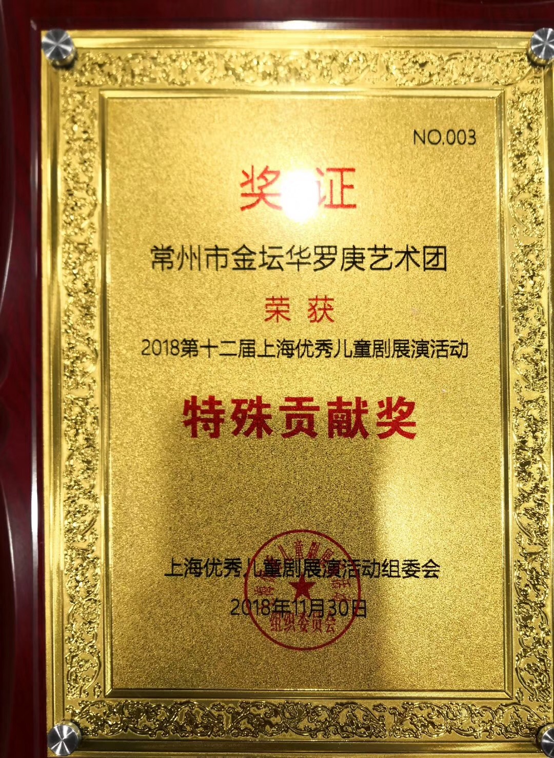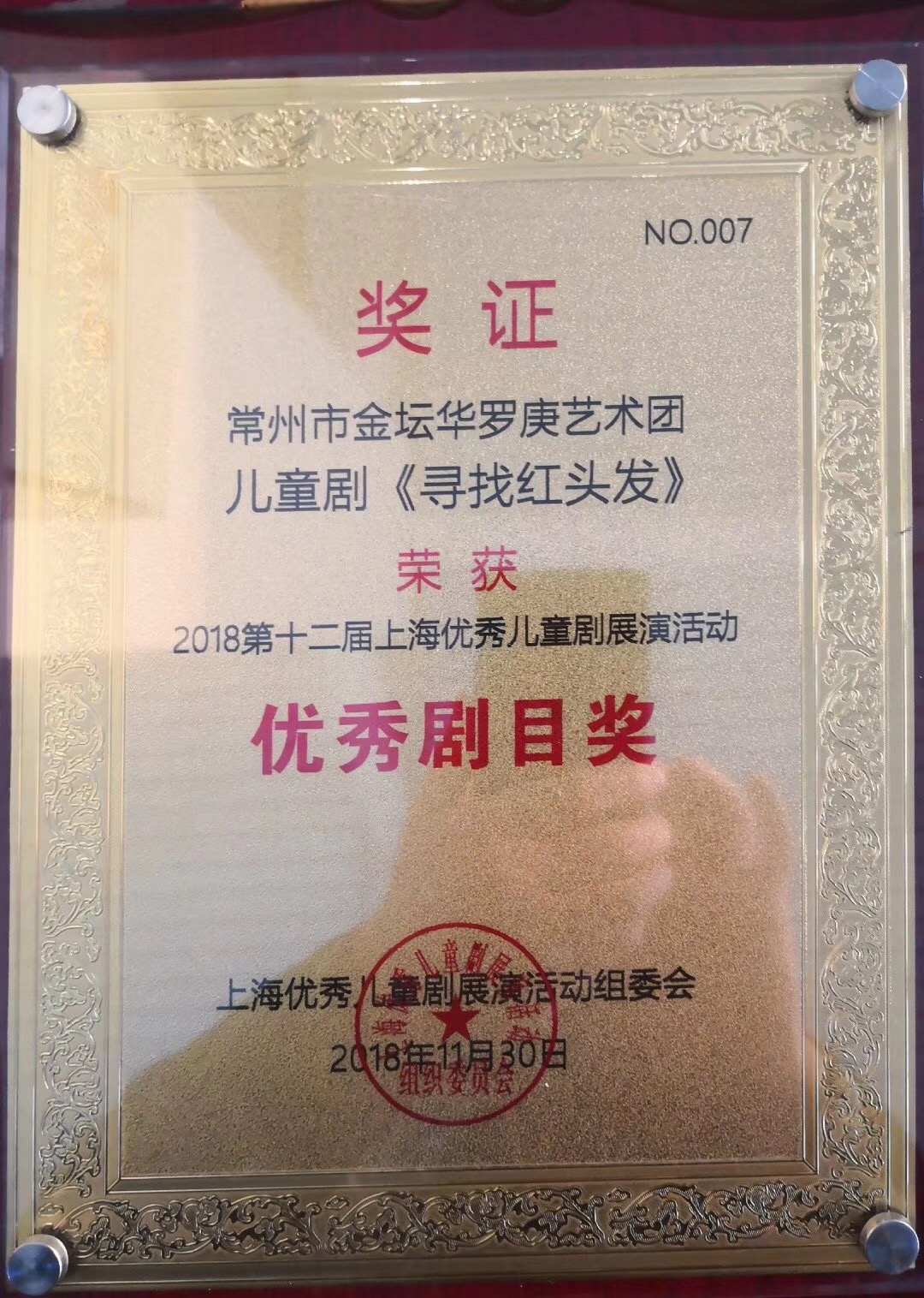 热烈祝贺上海第十二届优秀儿童剧展演胜利闭幕!我团在本届入选的现代儿童剧《寻找红头发》展演中荣获"优秀剧目奖"。上海儿展每两年一届共举办十二届,我团就参加了九届,每届都获得了优秀剧目奖,其中《留守小孩》《长荡湖来的女孩》分别作为第八届、第十届上海儿展闭幕式,今天上海儿童剧展演组委会还特别为我团设定并颁发"特殊贡献奖"。