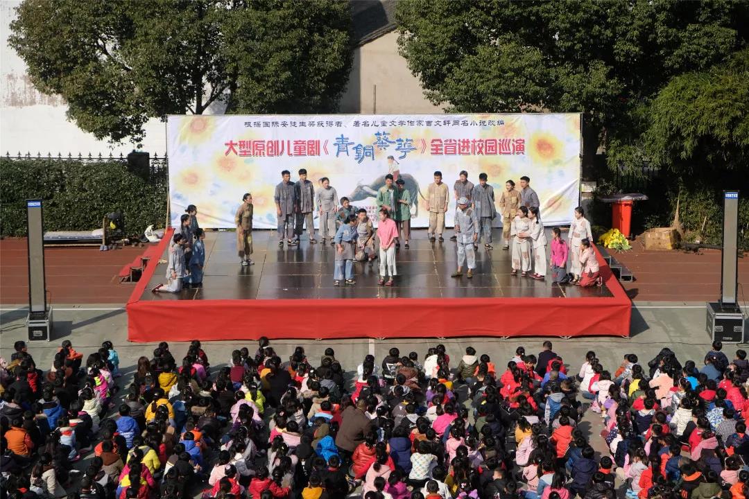 3月12日上午,常州华罗庚艺术团精心排练的儿童剧《青铜葵花》在我校操场演出。曲折感人的情节,真情投入的演出,使得师生们看了拍手叫好,如沐春风。