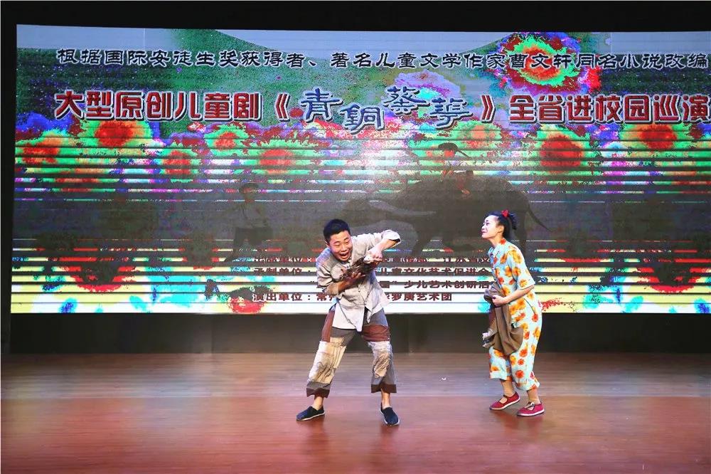 据了解,儿童剧《青铜葵花》由省委宣传部、省文明办出品,改编自国际安徒生奖获得者、江苏籍著名作家曹文轩的代表小说《青铜葵花》,演绎了一个触动人心的故事:小女孩葵花在洪水中获救后被收养,她和油麻地农村哑巴男孩青铜成了兄妹,两人在奶奶的照料下共同成长,他们一起经历了贫穷的生活,也经历了“苦难中的美丽”和“挫折中的成长”。去年10月,该剧获得了“2018江苏紫金文化艺术节”新创剧目“特别奖”,并被列入省文明委重点推广巡演剧目,在江阴将巡演15场。