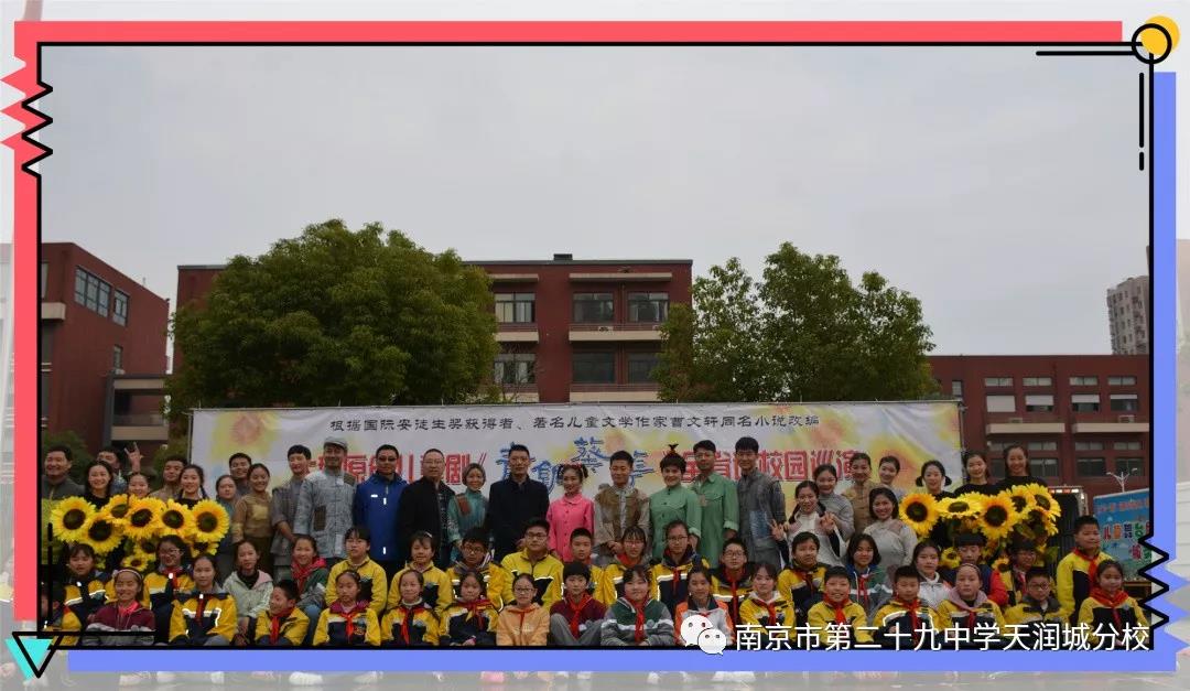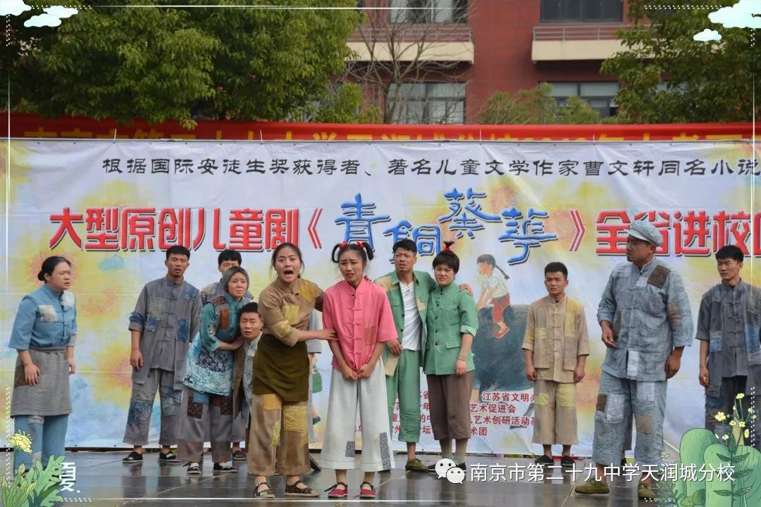3月18日下午,音乐儿童剧《青铜葵花》在南京市第二十九中学天润城分校举行表演,给全校师生带来一场充满感动的心灵洗礼。该剧根据国际安徒生奖获得者、江苏籍著名作家曹文轩的小说《青铜葵花》改编而成。《青铜葵花》是曹文轩先生的代表作。这部小说艺术展现了“苦难中的美丽、挫折中的成长”的深刻主题,在海内外享有较高声誉。全校师生满心欢喜,享受着文学和艺术的浸润。