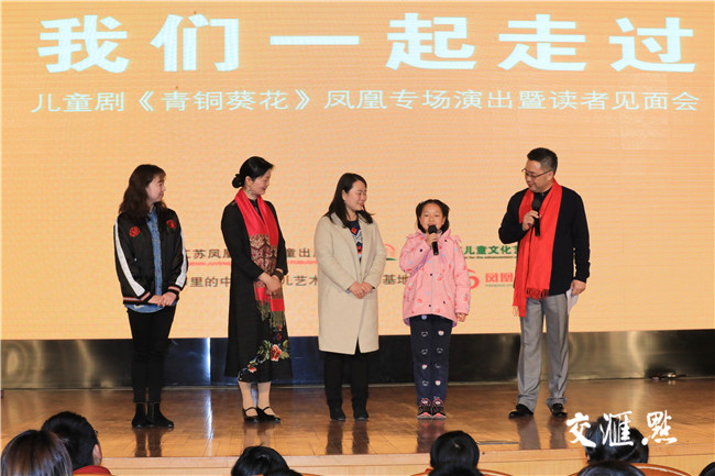 记者还了解到,儿童剧《青铜葵花》自2018年5月29日在南京荔枝大剧院隆重首演以来,已先后在南通、盐城、江阴、镇江等地开展巡演,此次凤凰专场演出是这部剧的第188场演出,也是南京巡演的重要一站。儿童长篇小说《青铜葵花》的作者、中国首位国际安徒生奖得主、北京大学教授曹文轩先生对这部剧的改编和演出给予了极大的关注和支持,在去年亲赴《青铜葵花》荔枝剧场的预演仪式。这次听闻儿童剧《青铜葵花》在凤凰广场举办专场演出,远在国外出席书展的曹文轩先生发来祝贺视频,高度肯定了该剧的艺术成就,寄语广大小读者在阅读中度过美好的童年。”