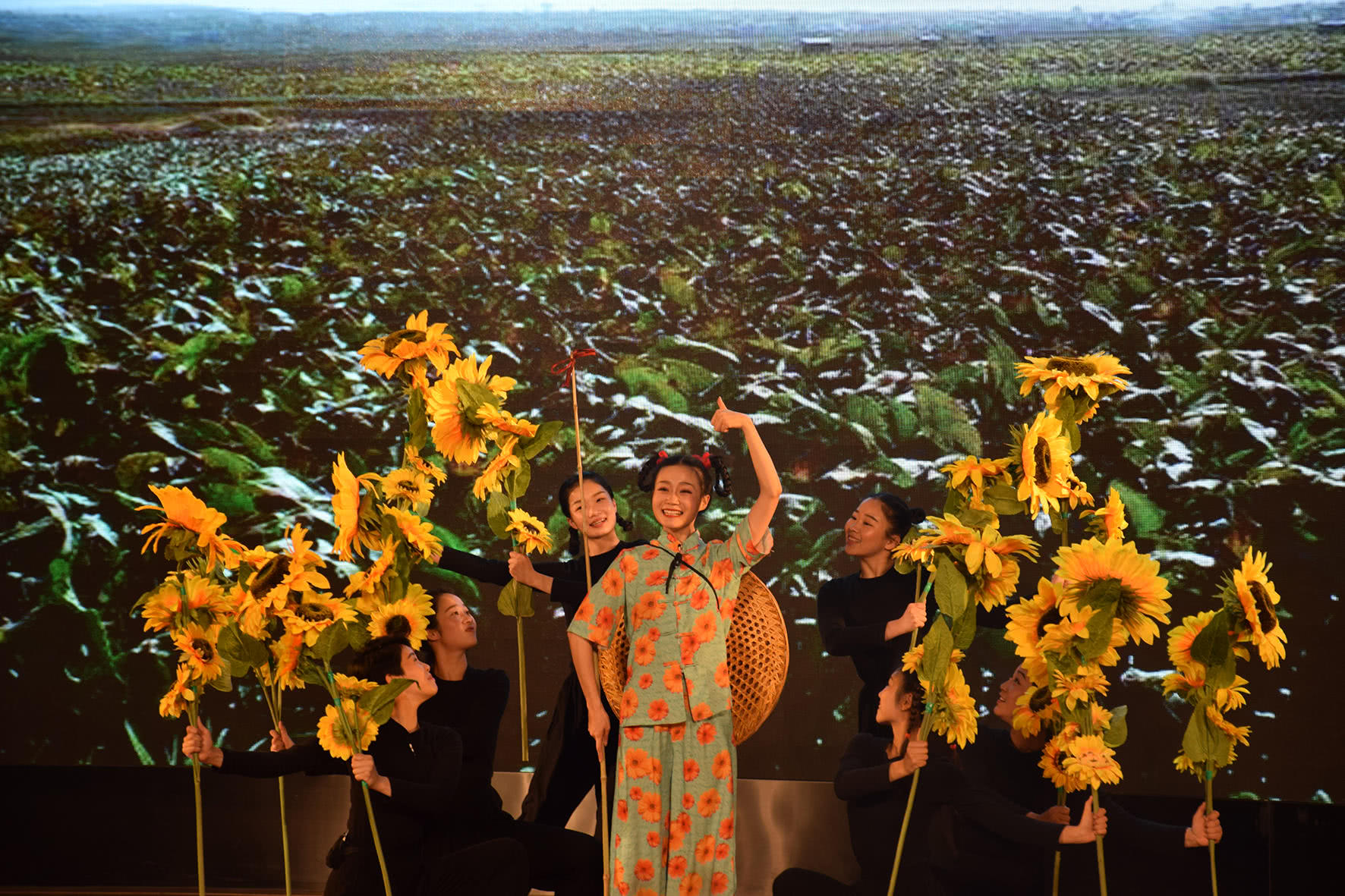 城里的女孩葵花跟着爸爸下了乡,结果却被一场无情的洪水冲到了油麻地,油麻地的村民为失去双亲的葵花住在谁家而争执了好久。最后,村里最贫穷但很善良的青铜家收养了她。青铜是个哑巴,他不会说话,但是他对葵花很好。青铜和葵花都已经到了上学的年纪,青铜很想去上学,好不容易挣到了学费,但是却只够一个人读书。后来,青铜还是把这个机会让给了与自己没有丝毫血缘关系的妹妹葵花。葵花晚上读书没有灯,青铜就去捉一些萤火虫,装到南瓜花里,南瓜花就成了一盏盏天然的灯,照亮了葵花求学的路。有一次,青铜为了挣钱给葵花买做衣服的布,在下雪的冬天跑到镇上卖芦花鞋,生意做成了,但是钱还是不够。最后,青铜就把自己脚上的鞋也卖了,打着赤脚回家。葵花也是一个好女孩,她为了给奶奶治病,故意考砸了特别重要的期末考试,以求退学。话剧的最后,葵花要回城市了,青铜不知为何,错过了与葵花挥手再见的机会,青铜急哭了,在河岸边不断地追逐着,作为一个哑巴,他竟然拼尽全力喊出了“葵花”这个美丽的名字。