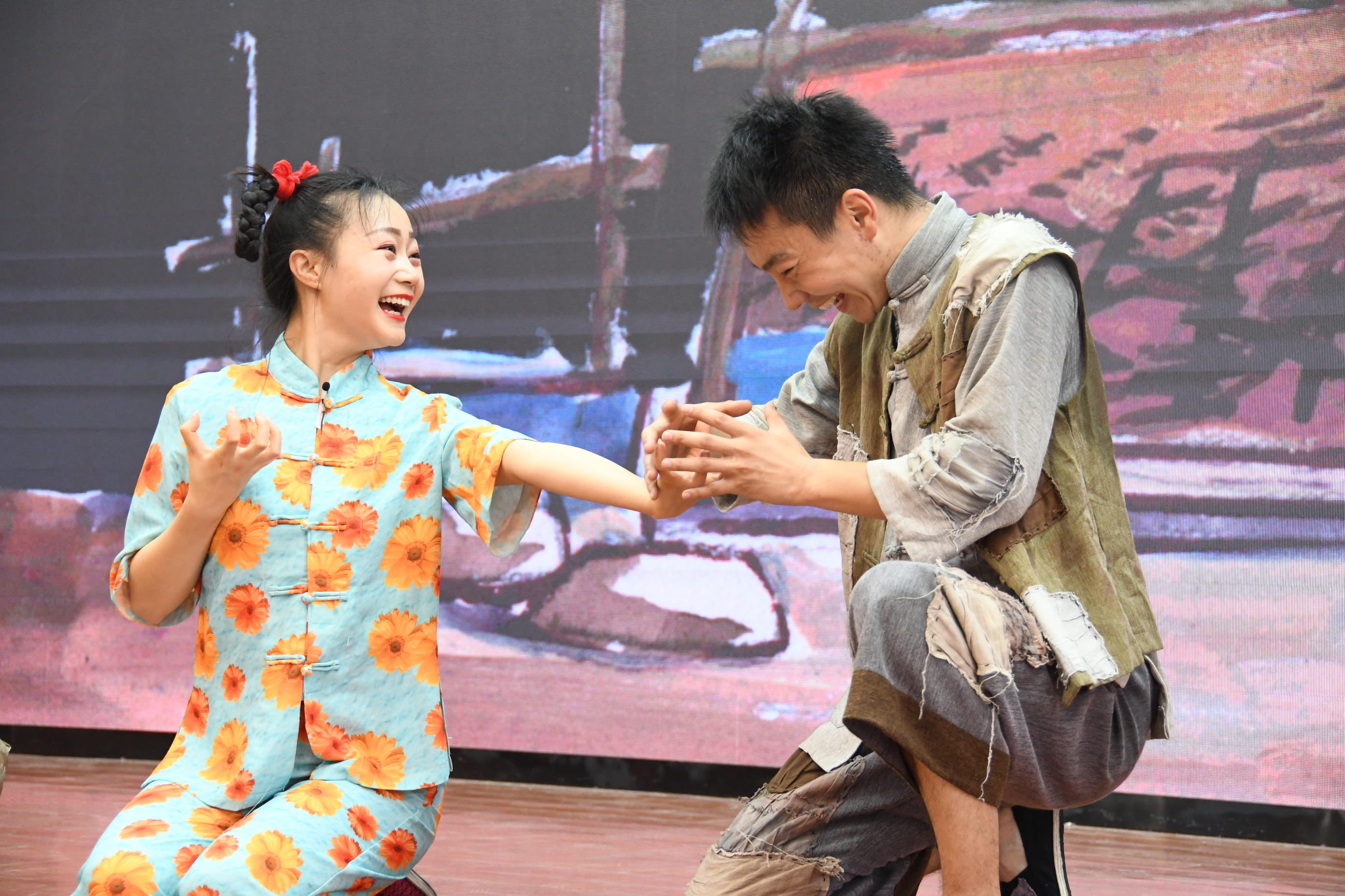 话剧中的细节印象深刻。开场就是洪水滔天,被无情的大水冲卷、翻滚到油麻地的葵花。这场洪水让城里的孩子葵花成了孤儿。村长让村民们商量谁家收留葵花,葵花明白谁家都有难处。她说,“这里不是我的家,我走。”一个柔弱无助,又懂事坚强的葵花一下子从书里跳出来。这样的女孩怎么不让人心疼。
