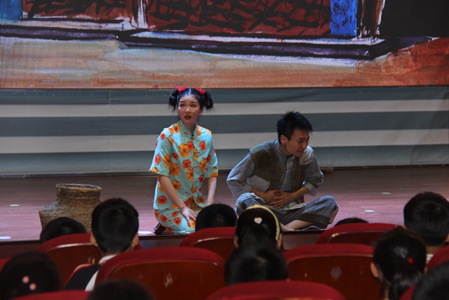 《青铜葵花》这部优秀的儿童剧思想内涵丰富、艺术形式生动。全剧撷取了收养、让学、离别等多个动人片段,以温暖的旋律和感人的情节,生动展现“苦难中的美丽”。师生时而欢笑,时而感叹,时而落泪,随着剧情的发展不断变化。常州市金坛华罗庚艺术团的艺术家们的表演精彩生动,赢得了阵阵掌声。