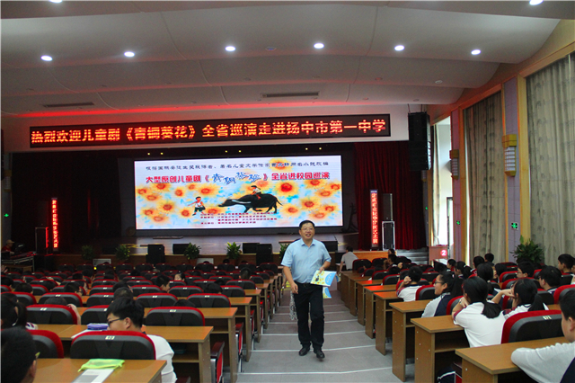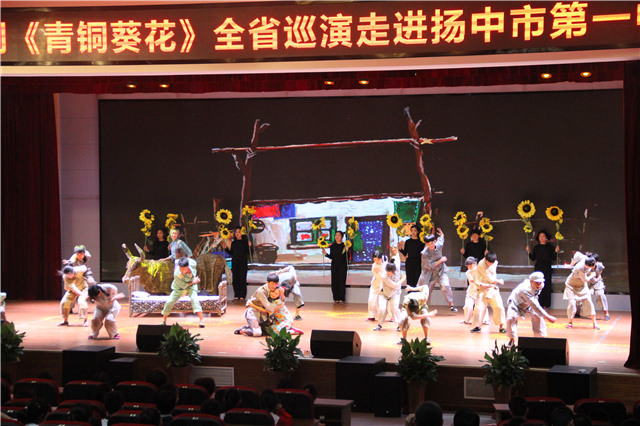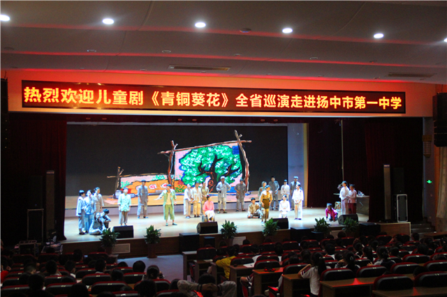 为了深入推进新时代文明实践进校园工作,进一步丰富中小学“大阅读”工程内涵,提升学生道德水平与艺术素养,2019年6月14日我校组织七年级学生观摩了音乐儿童剧《青铜葵花》。