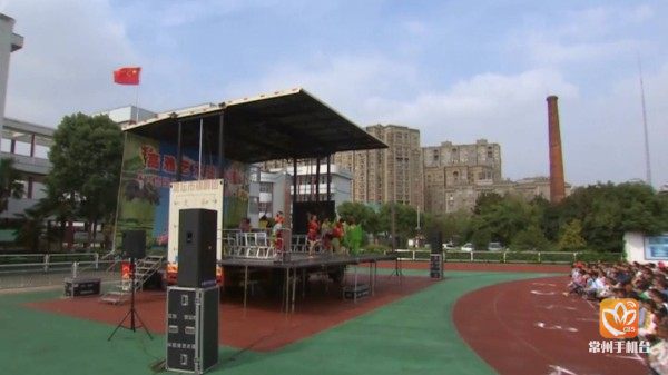 搭在学校里的临时演出台