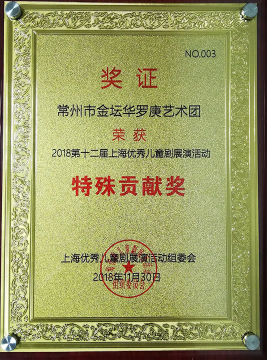 2018年11月30日《寻找红头发》第十二届上海优秀儿童剧展演活动特殊贡献奖。