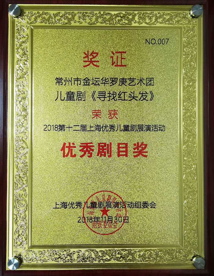 2018年11月30日《寻找红头发》第十二届上海优秀儿童剧展演活动优秀剧目奖。