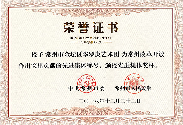 2018年12月22日荣获常州改革开放作出突出贡献的先进集体称号。