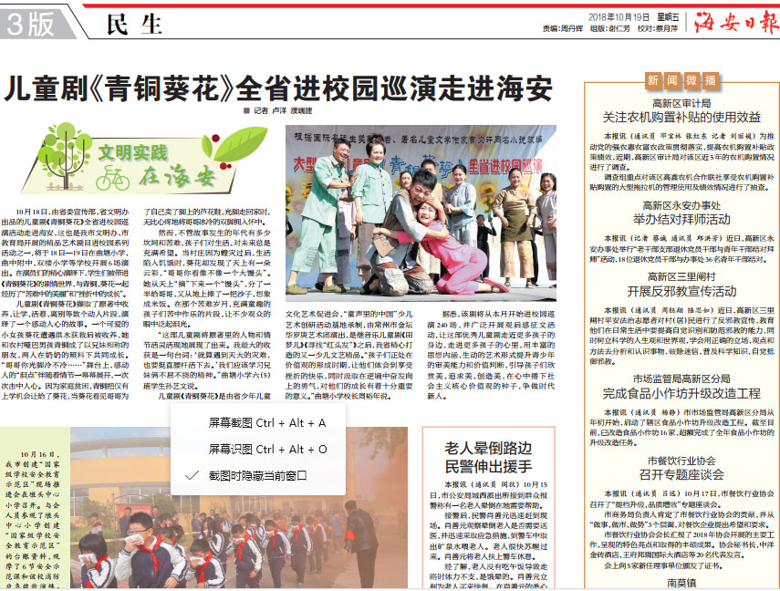 海安日报:儿童剧《青铜葵花》全省进校园走进海安
