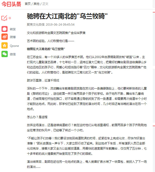 今日头条:驰骋在大江南北的“乌兰牧骑”