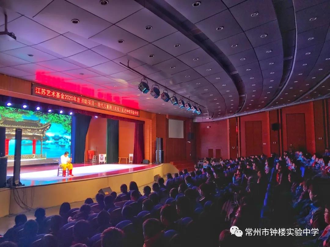 3月12日下午,常州市钟楼实验中学大报告厅不断飘出优雅的戏曲唱腔和一阵阵的叫好声。七、八年级的同学们正在津津有味地观看戏剧表演。